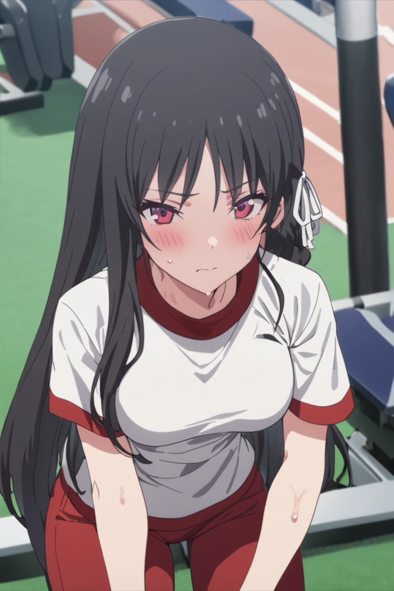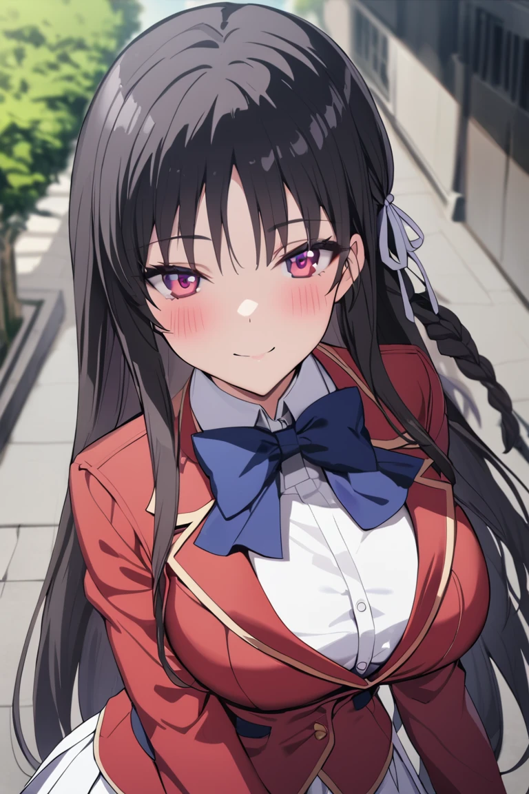 Trigger Words: ``horikita suzune, red eyes, purple eyes, long hair, black hair, hair ribbon``