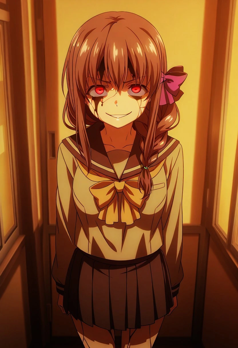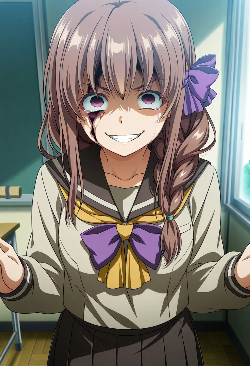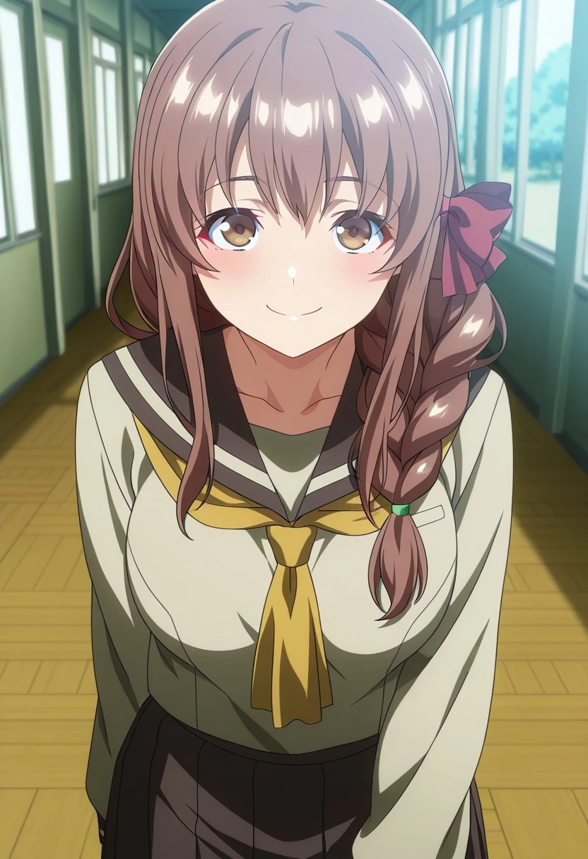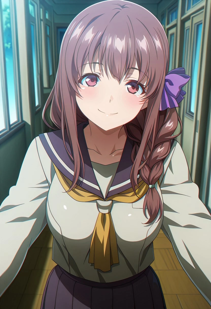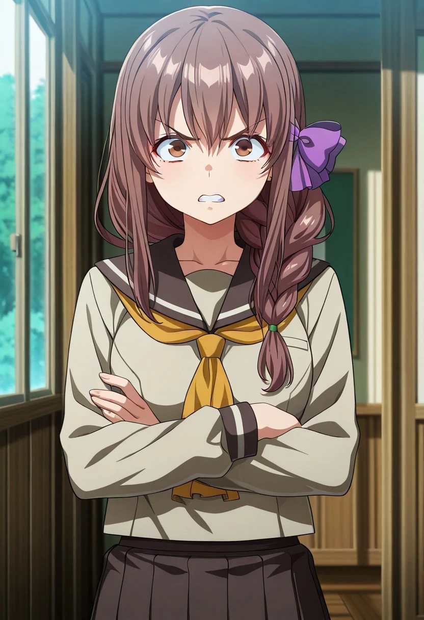 MatsubaraTouka, brown hair, long hair, braid, brown eyes,purple bow