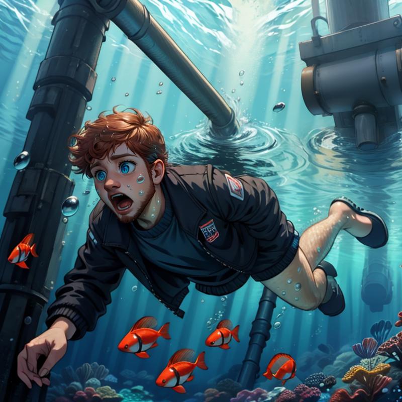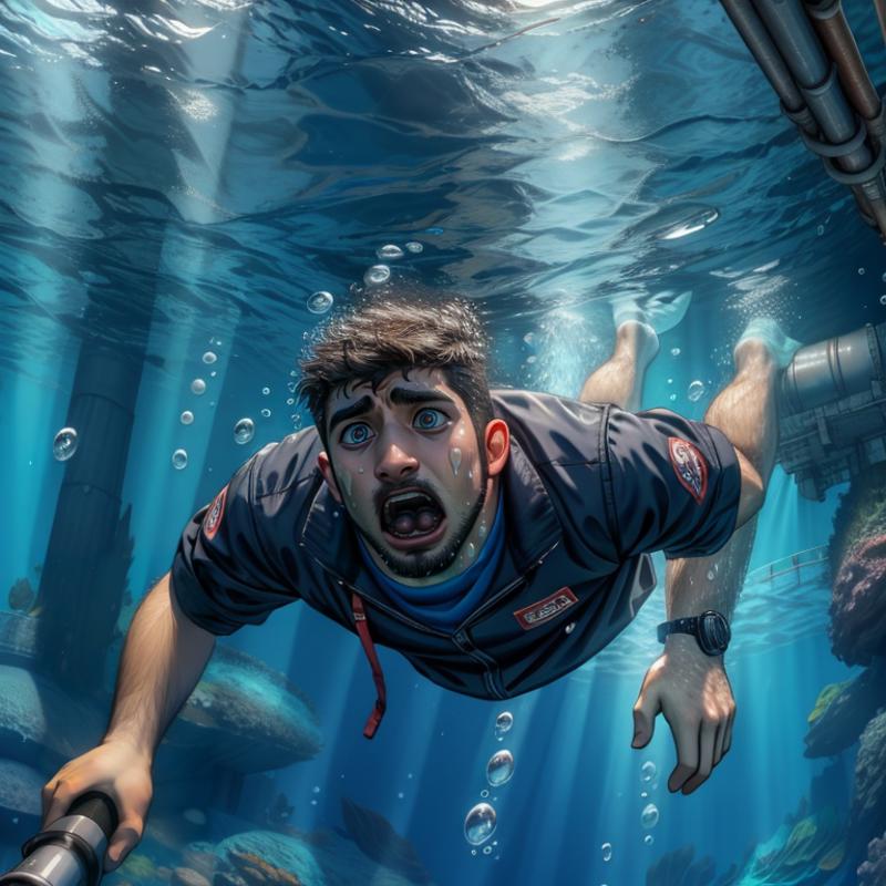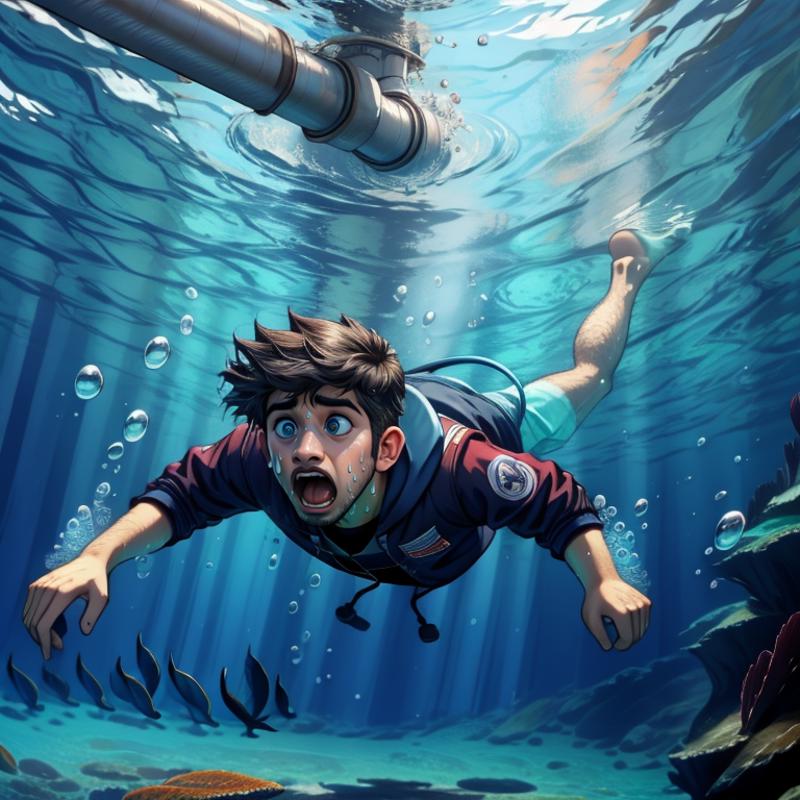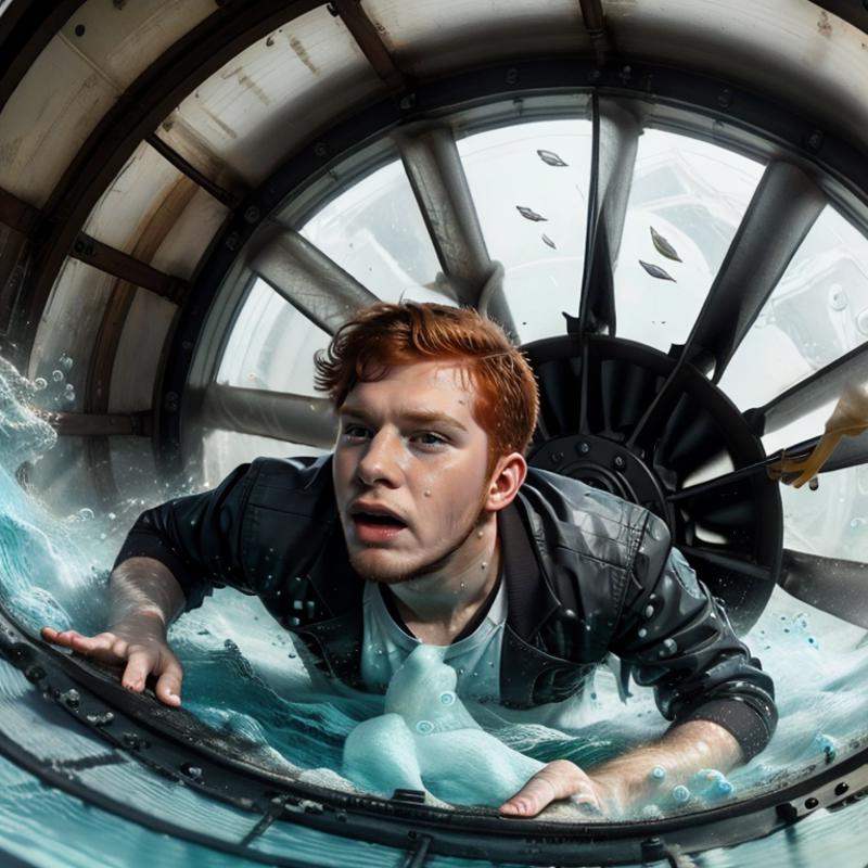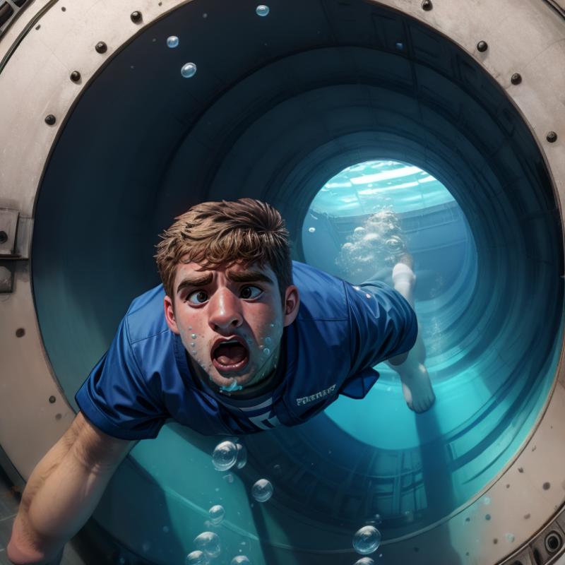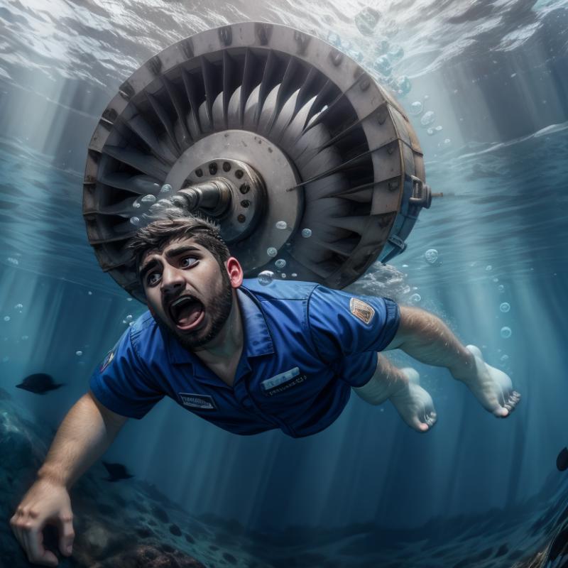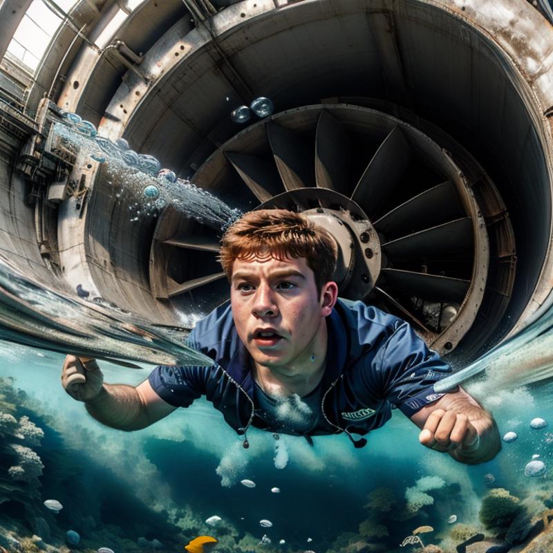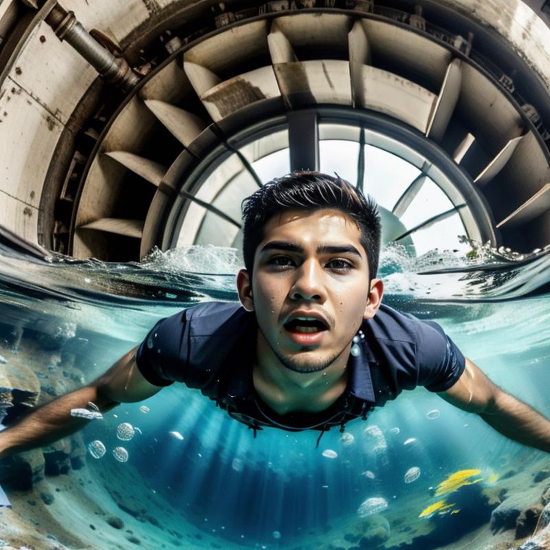 I have created a Lora that can generate a scene where a person inside an industrial pipe is about to be sucked into a hydro turbine.