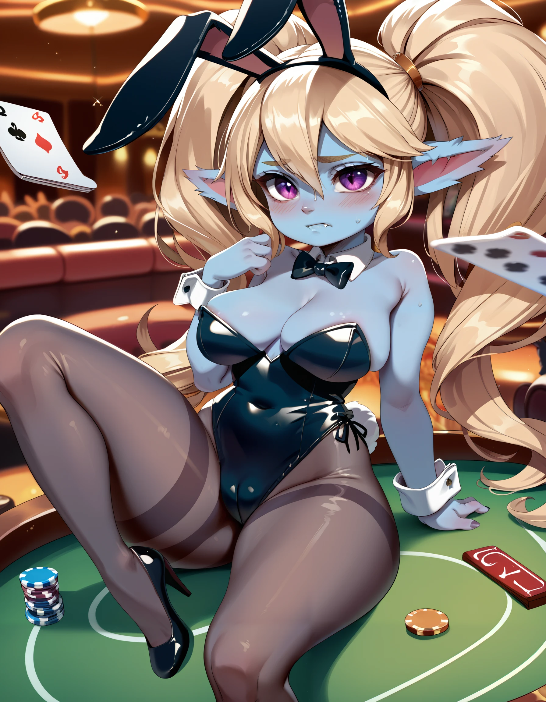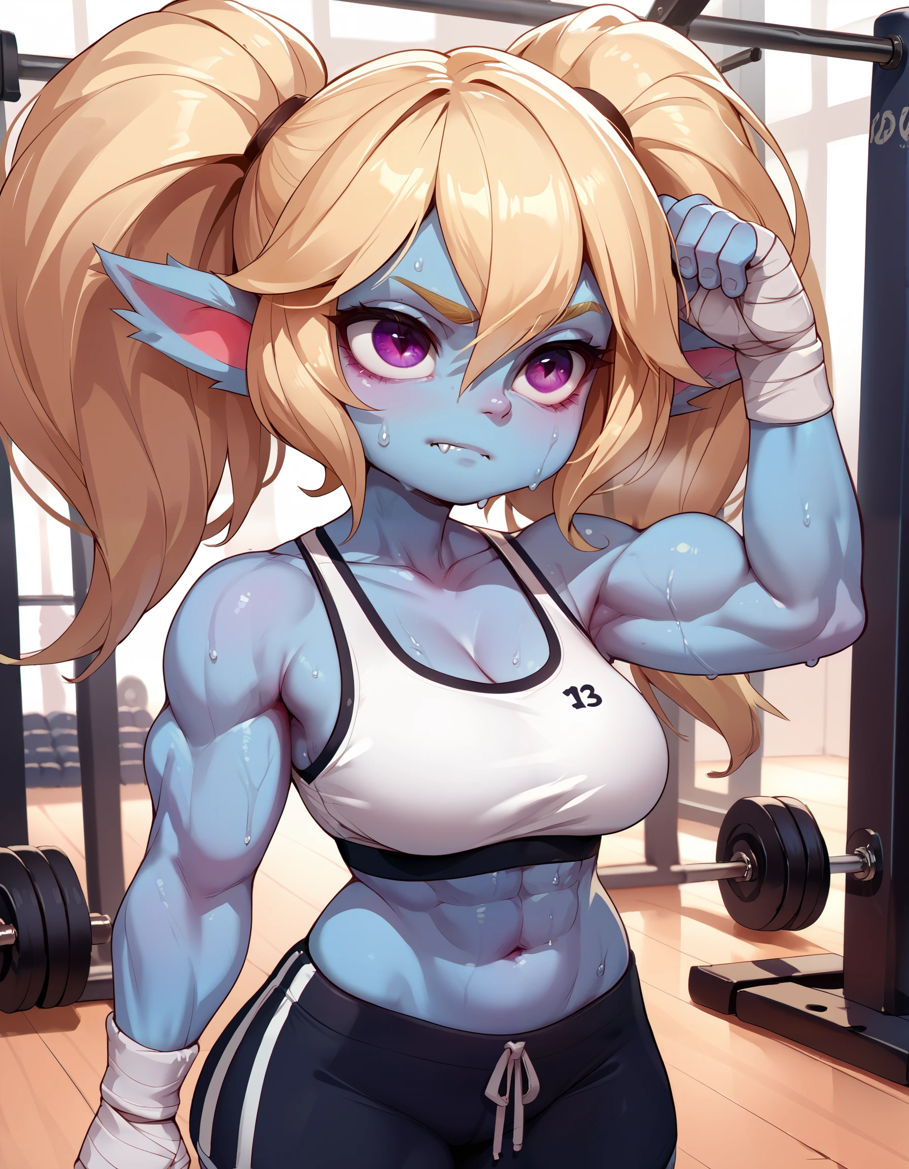 These help to create something that looks like poppy, without them she can have white skin and different hair/eye colours (unless that's what you want). She still often generates with white skin unfortunately, this could be due to Pony's bias to white females, or my own incompetency making the lora. Additionally, her skin ranges from light blue to pinkish purple. This is probably due to inconsistencies with Riot and artists colouring her skin.