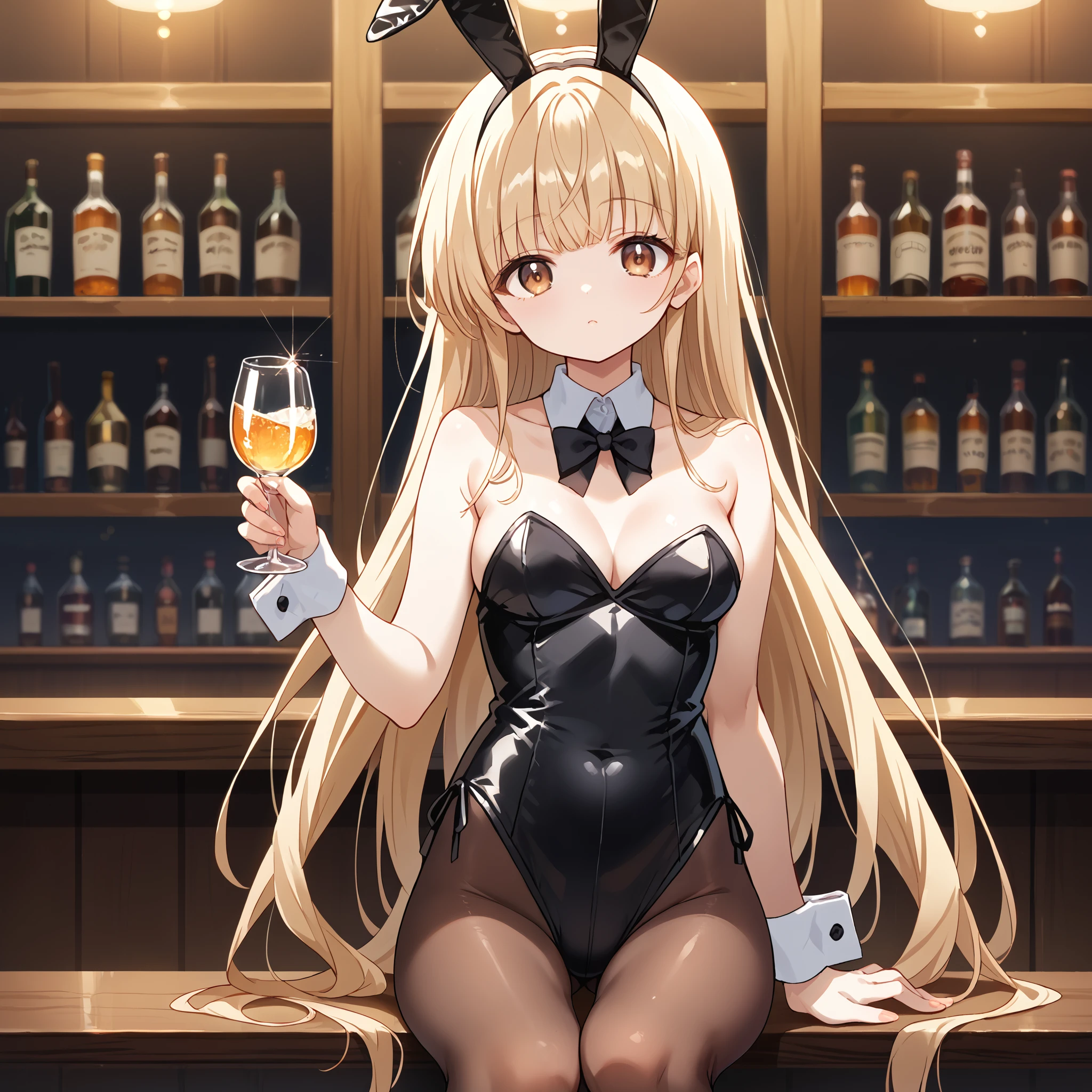 shiina mahiru, brown eyes, long hair, blonde hair, school uniform, black jacket, blazer, long sleeves, red bow, white shirt, collared shirt, grey skirt, plaid skirt, brown pantyhose,
