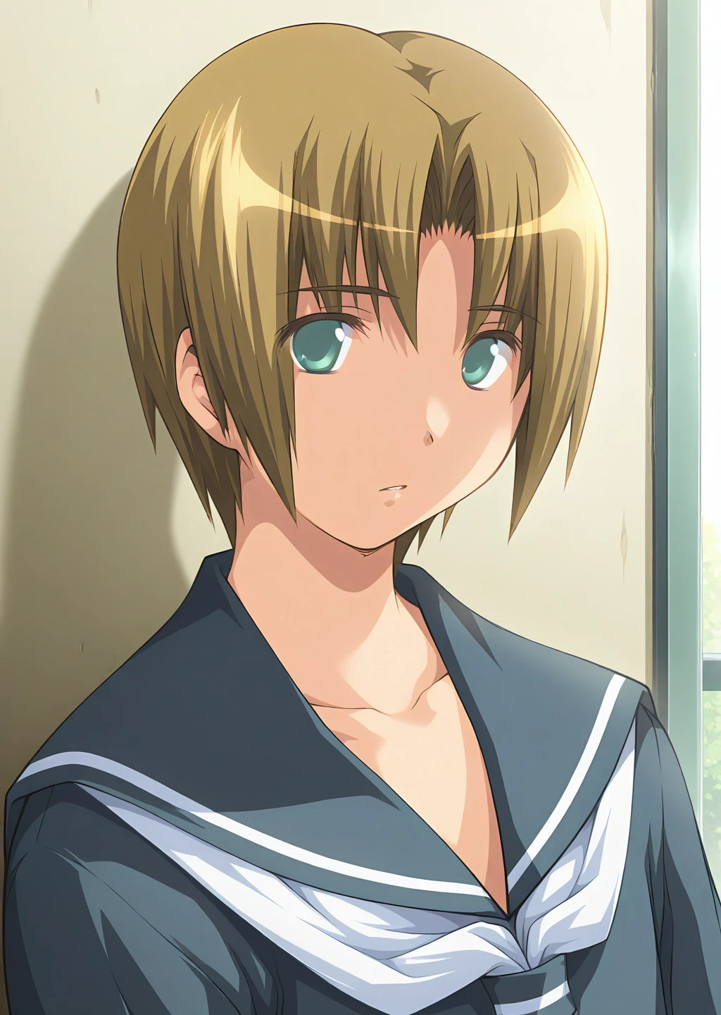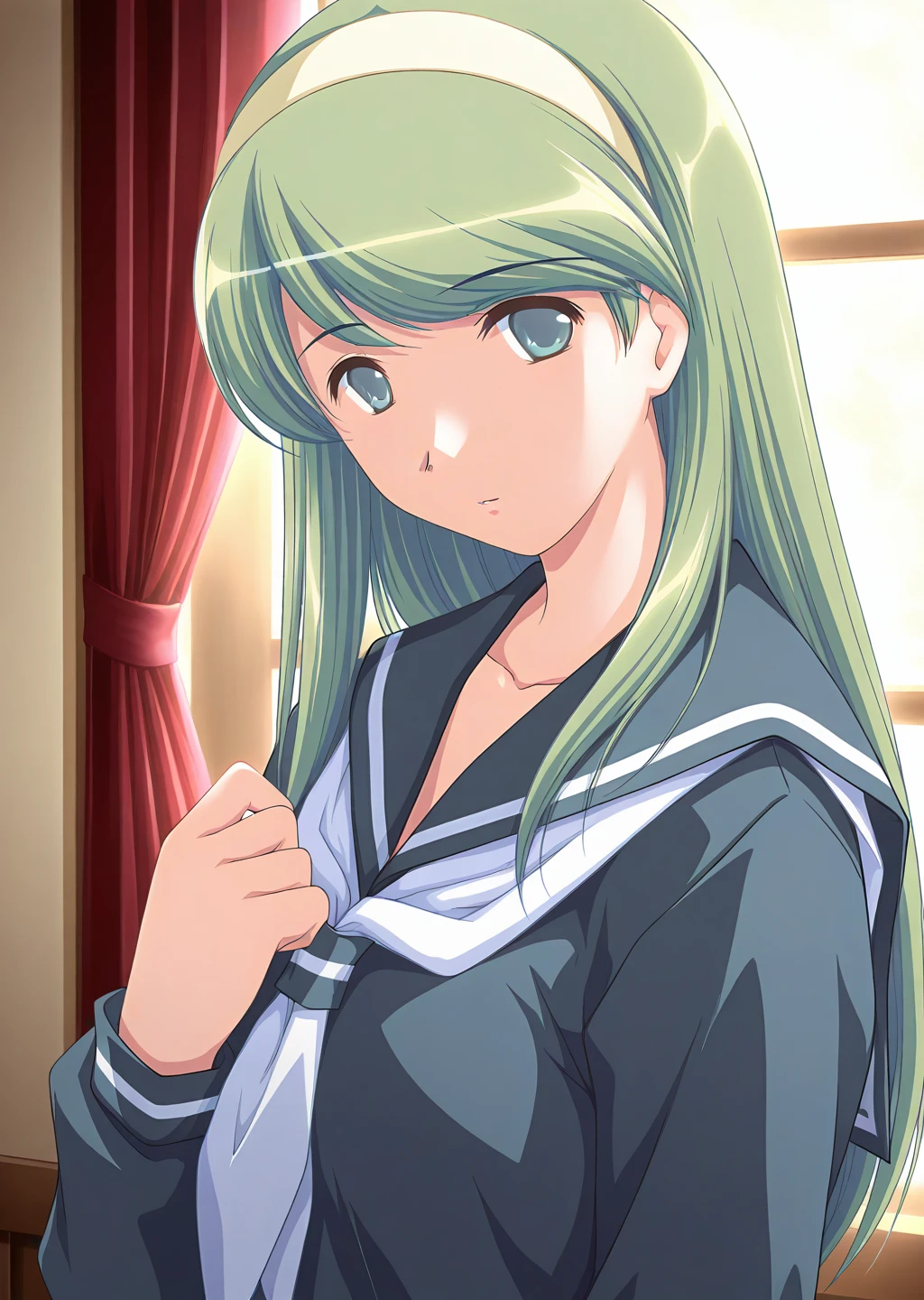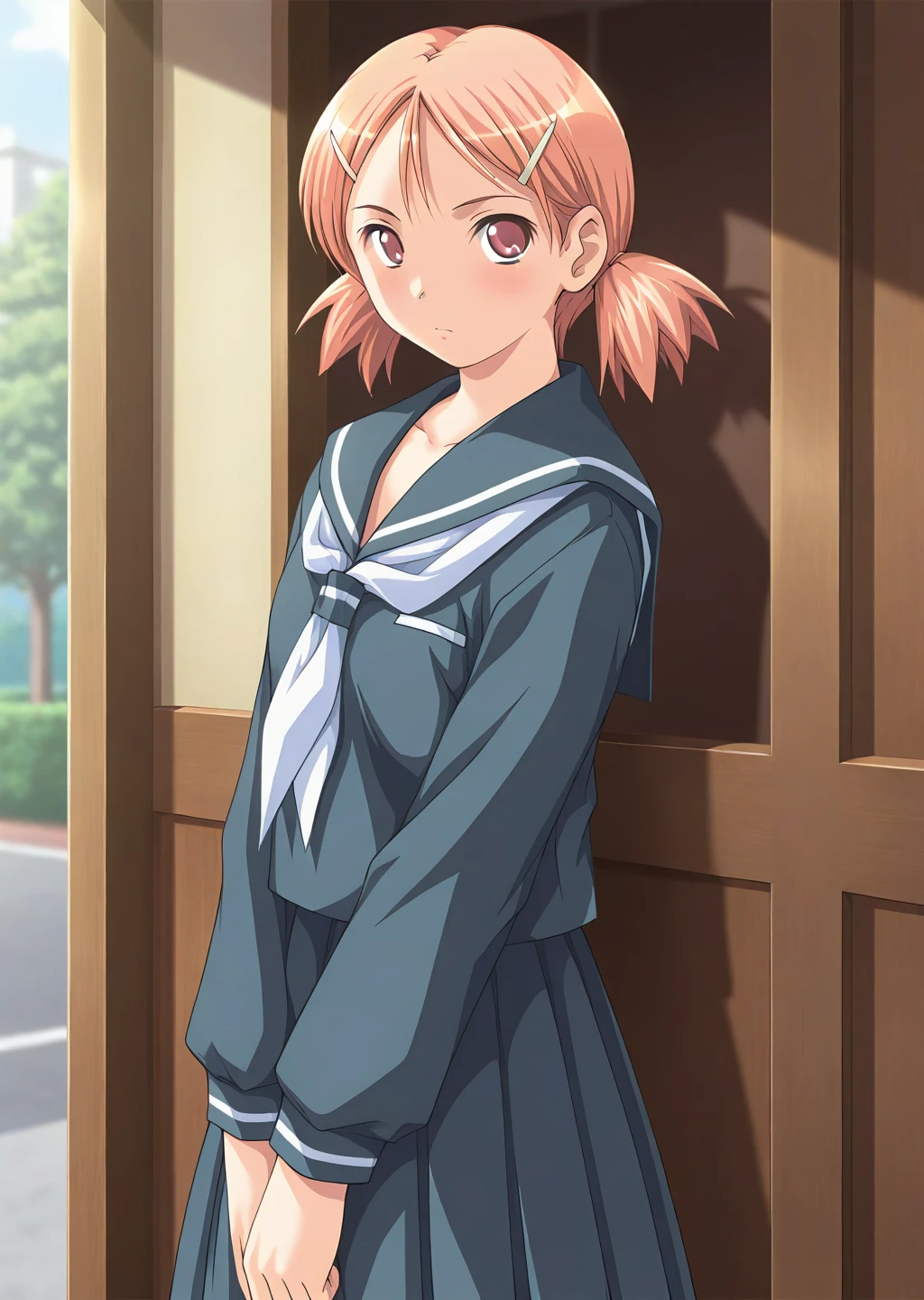 Generally dark grey serafuku, white neckerchief will get you the school uniform.
