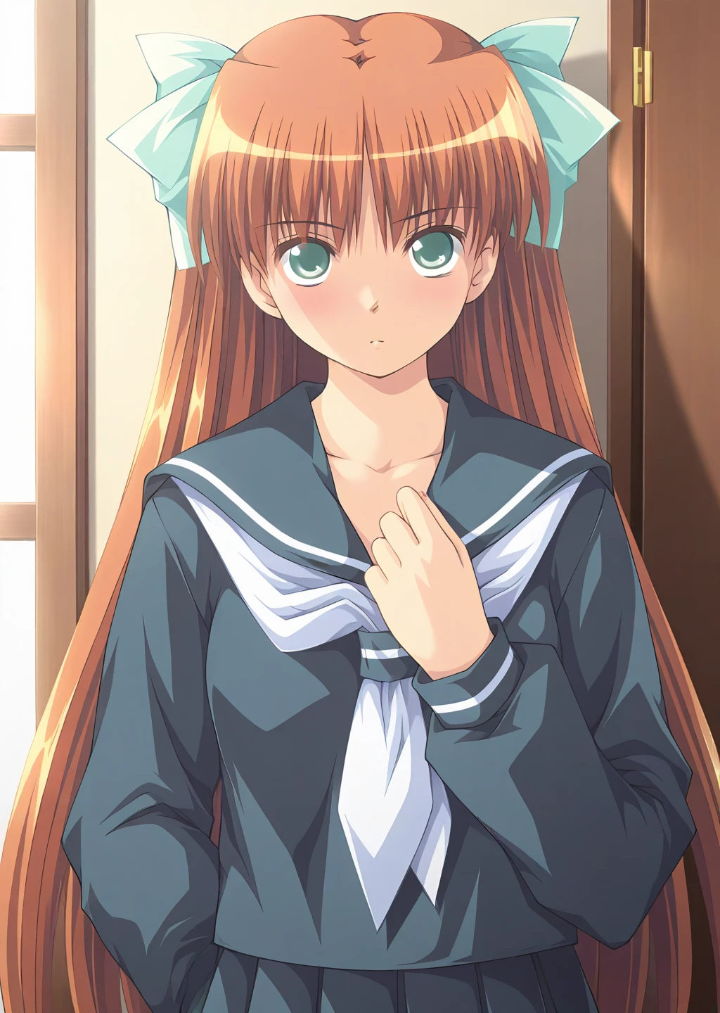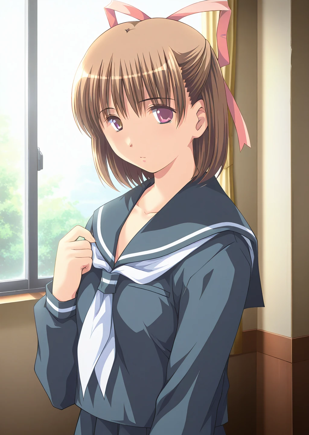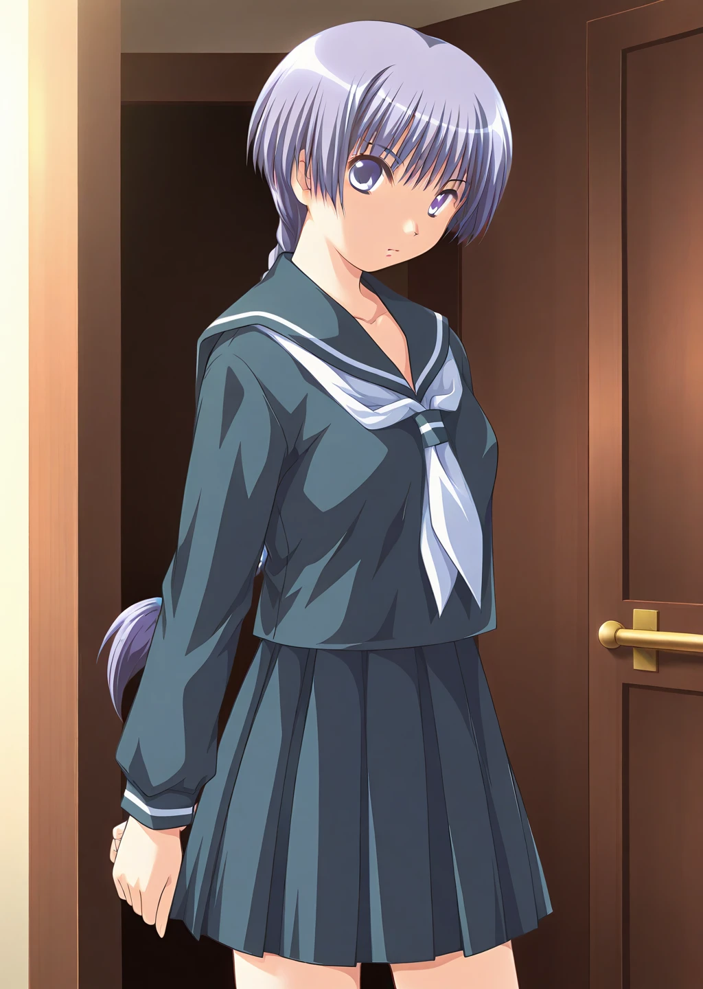 Tomomi: purple leotard and sometimes black dress, black bow ribbons. Getting Fubuki to wear the black dress in the same picture as Tomomi is a challenge for the reader.