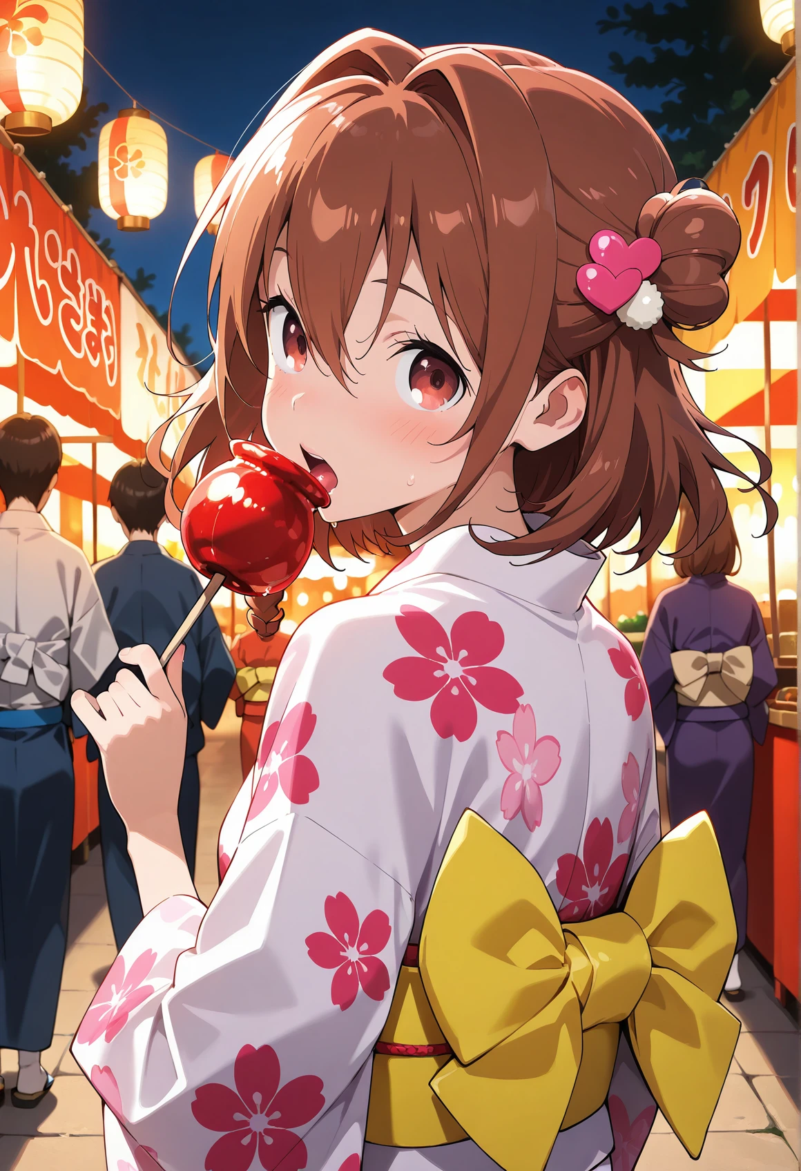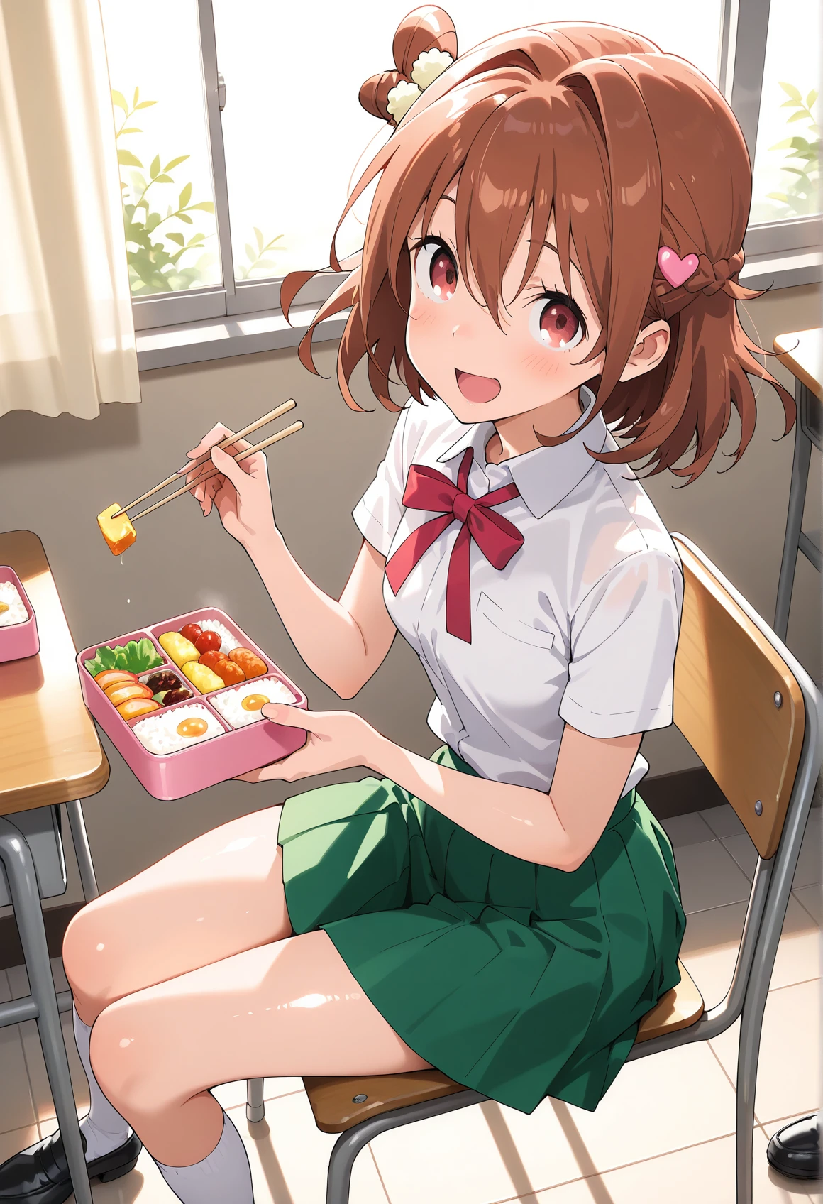 MS_NORMAL,brown hair,hair intakes,heart hair ornament,one side up,short hair,one side up,