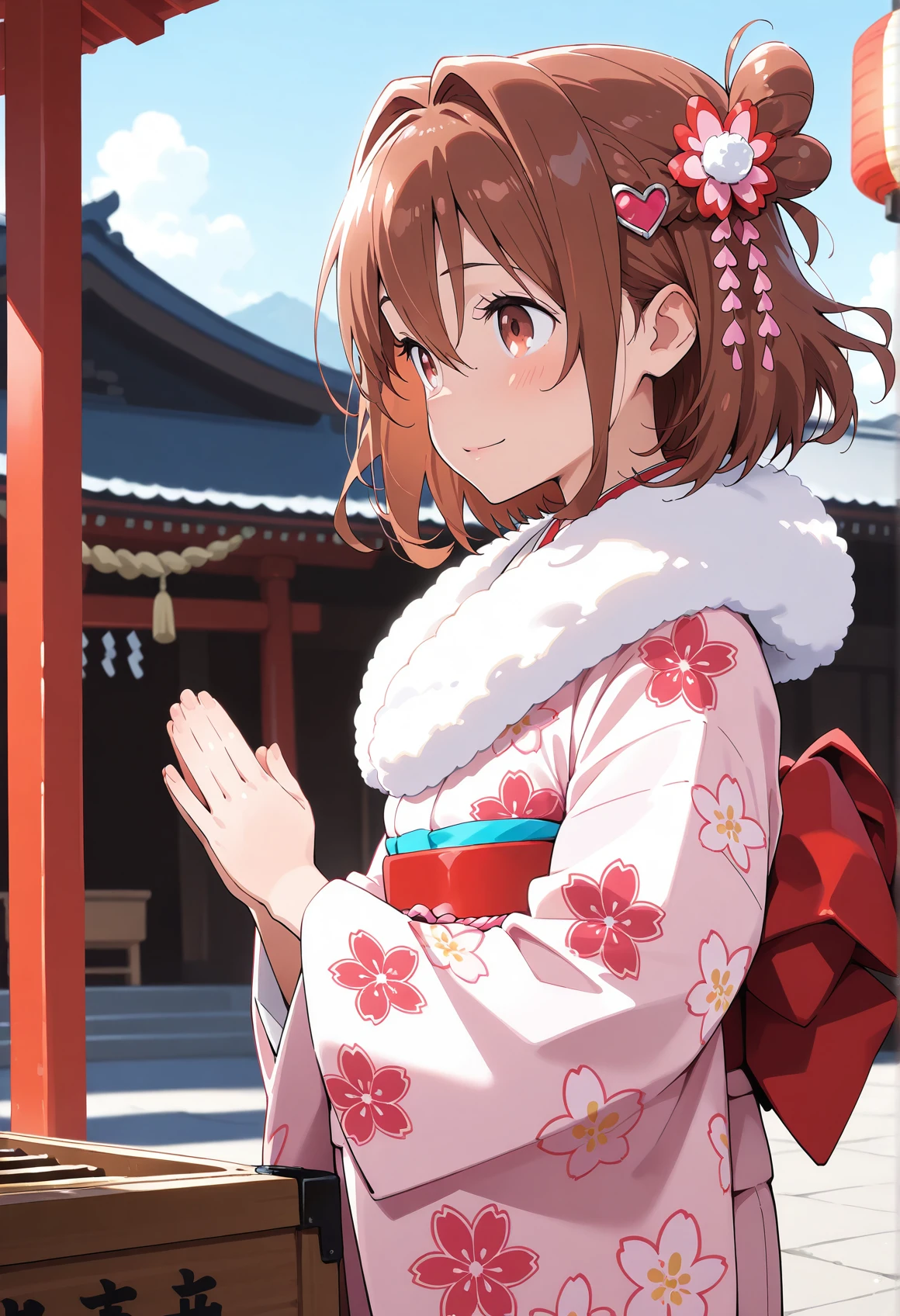 MS_NORMAL,brown hair,hair intakes,heart hair ornament,one side up,short hair,one side up,B1. 巫女 / miko(shrine maiden)