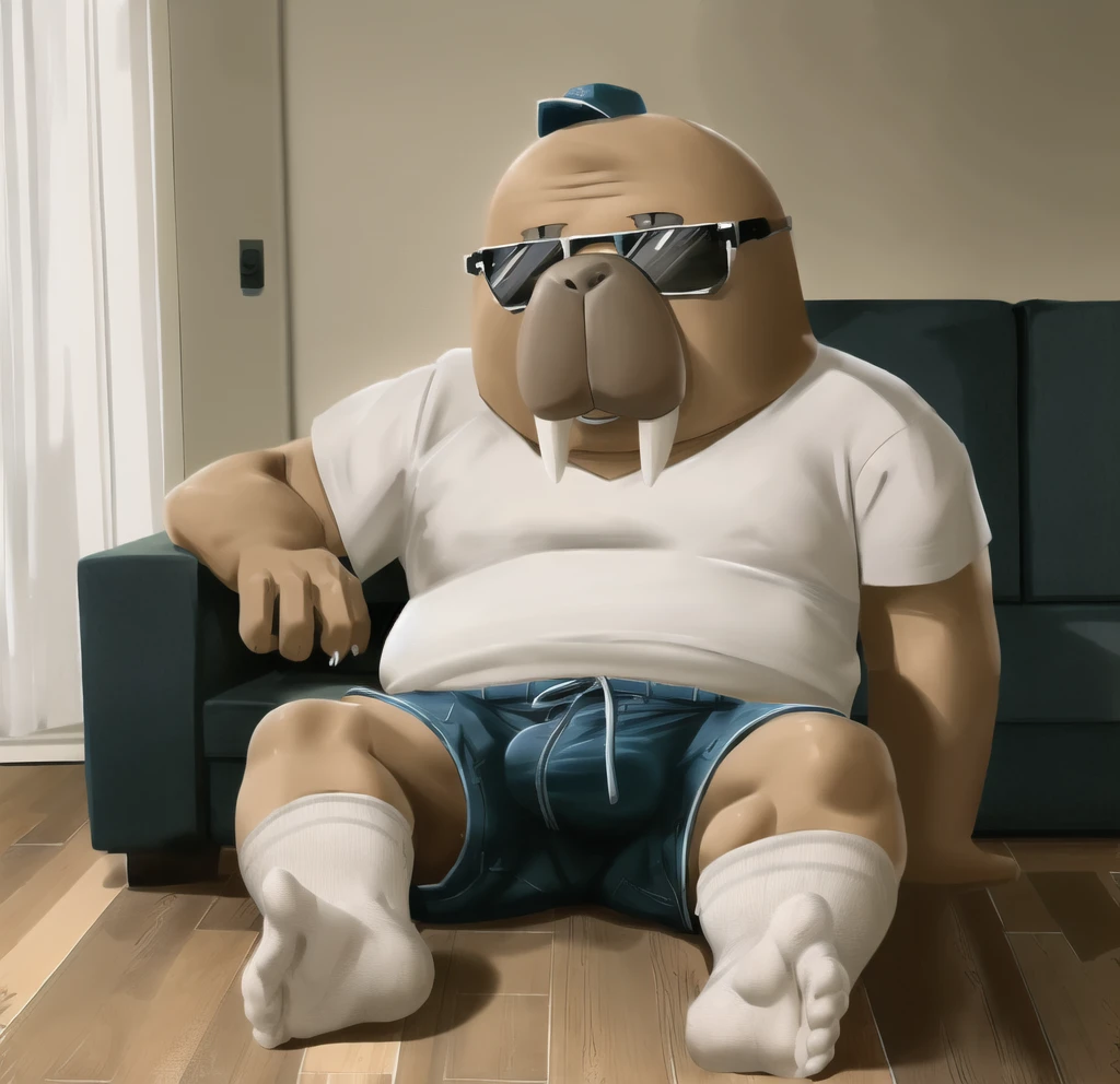 hiroshi odokawa \(odd taxi\), walrus, brown body, chubby