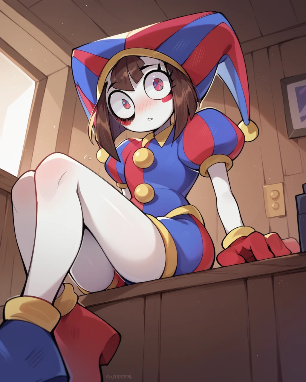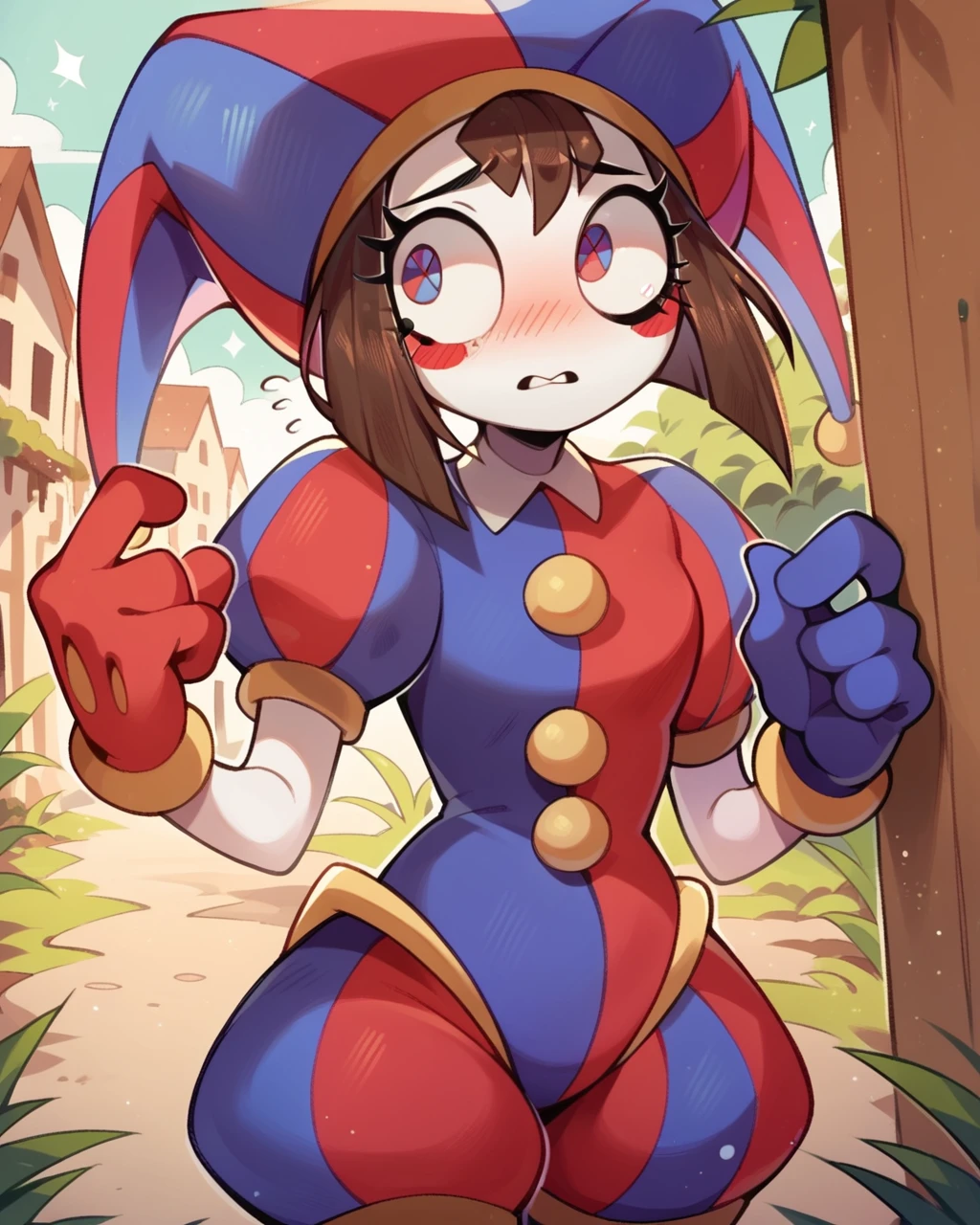 Despite this, the LORA will often give Pomni human skin if you don't prompt "colored skin, white skin" etc. The LORA can also struggle with making Pomni properly ???? if you prompt it, so make sure to use (brackets) if you have trouble.