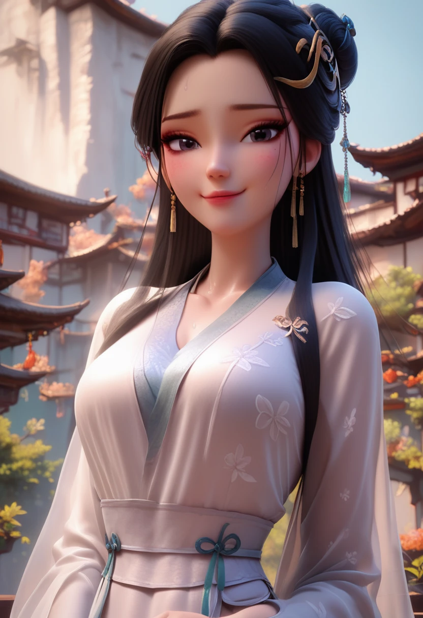 xiao bai,xiao bai, white chinese clothes, long hair, black hair, hair ornament, black eyes, chinese clothes, hair bun