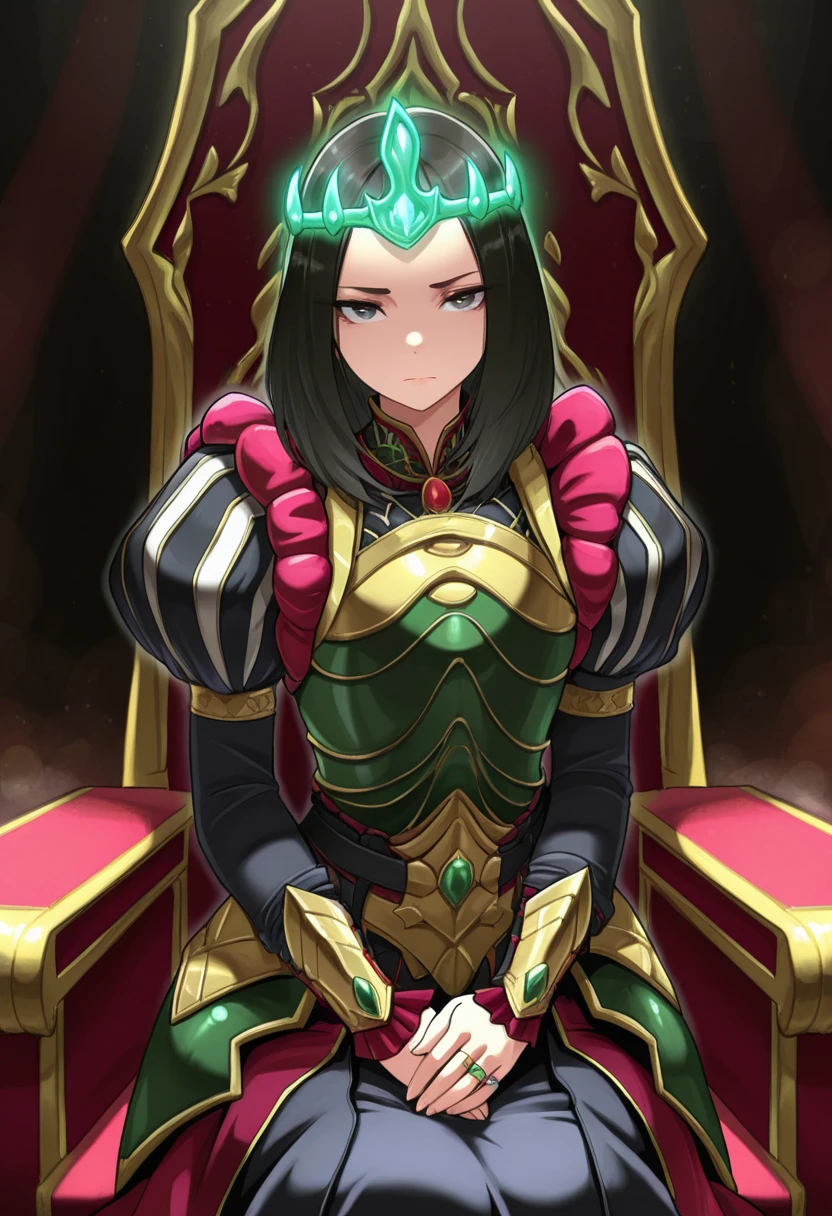 crown, armor, puffy sleeves, juliet sleeves, long sleeves, wrist guards, breastplate