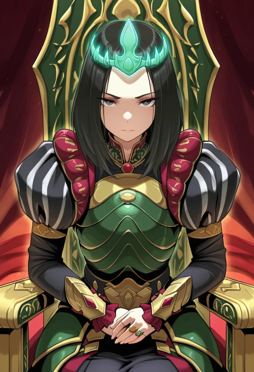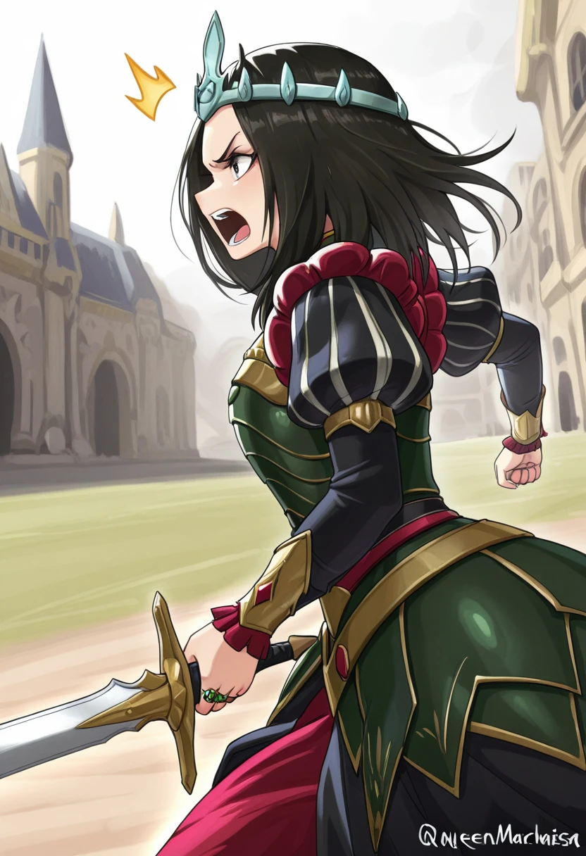 The Magic the Gathering character Marchesa d'Amati, as the Queen of the High City of Paliano. The look is based on the card Queen Marchesa, from the Conspiracy: Take the Crown expansion of MTG.