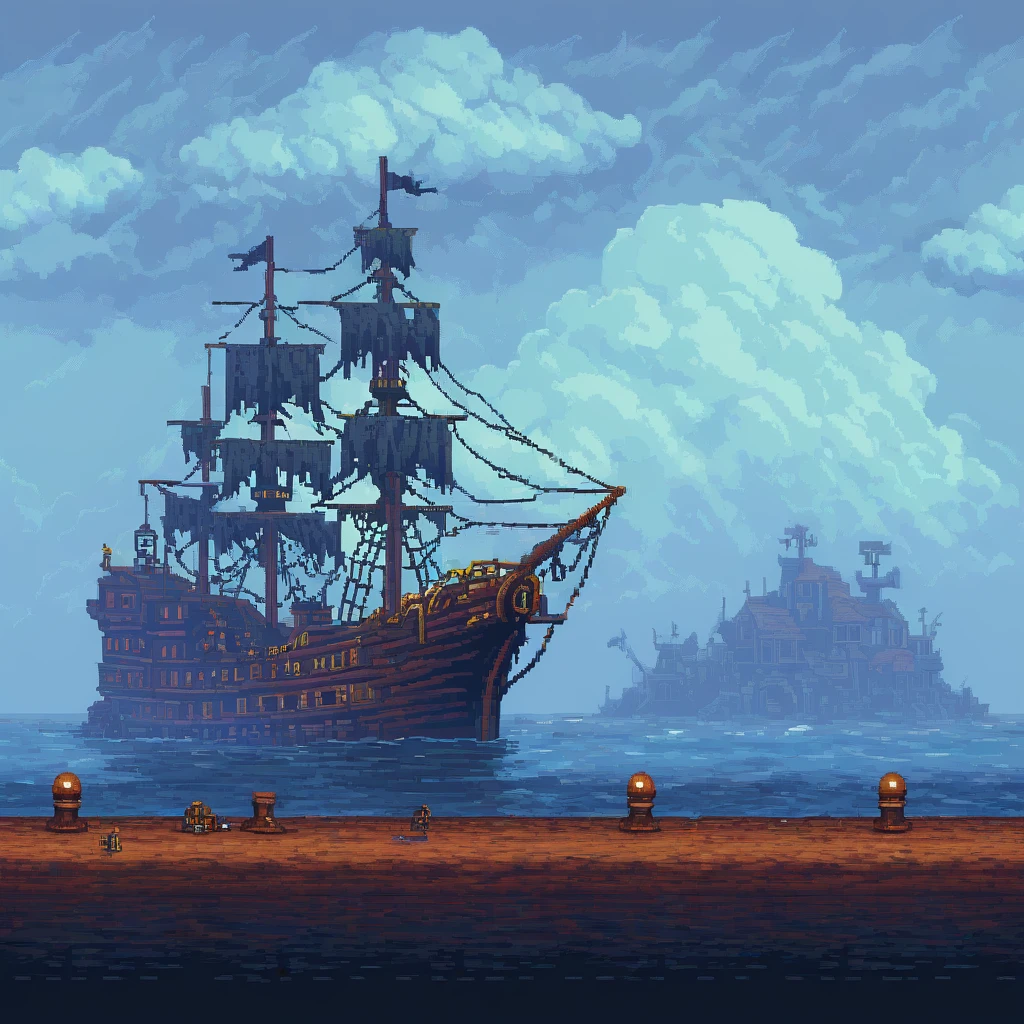 Produces pixel art style images. Should do backgrounds, scenery, landscapes and such pretty well, however, it will probably not perform well with people or animals.