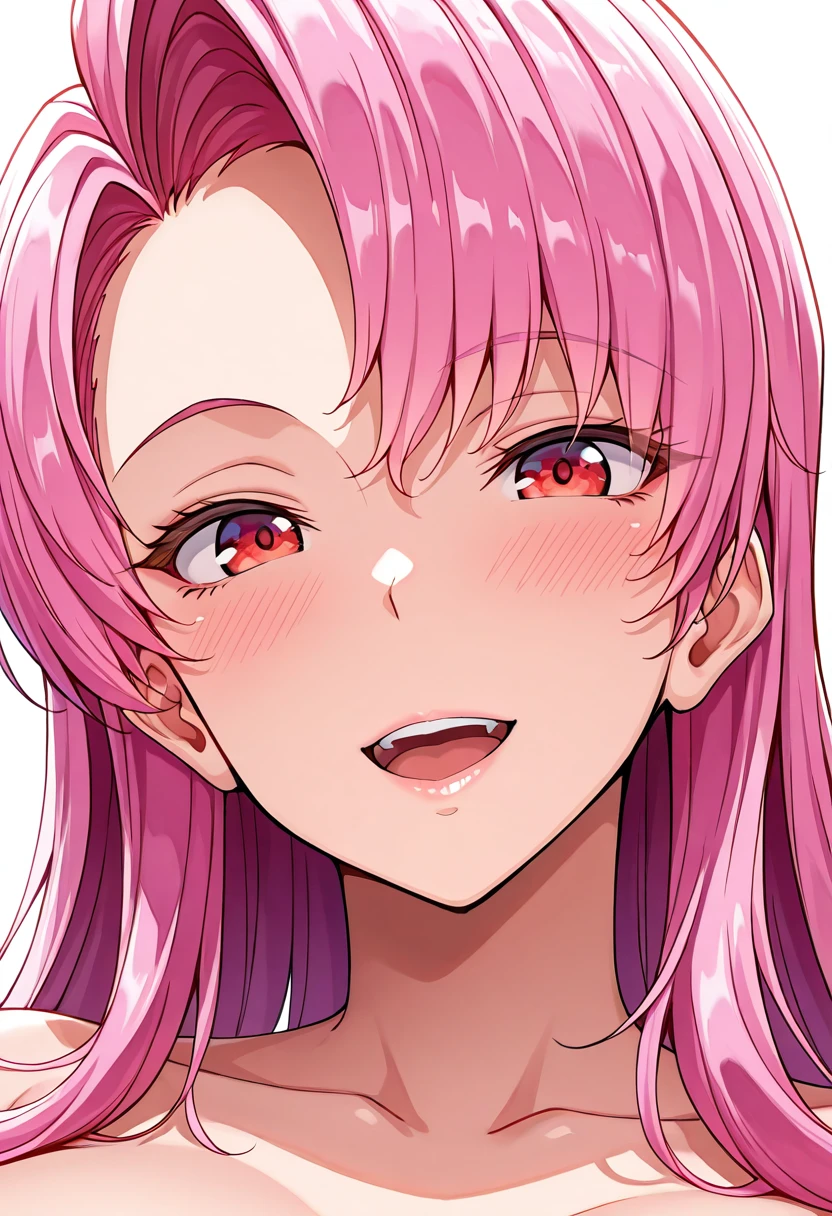 aphrodite, pink hair, red eyes, long hair,bangs, Straight hair