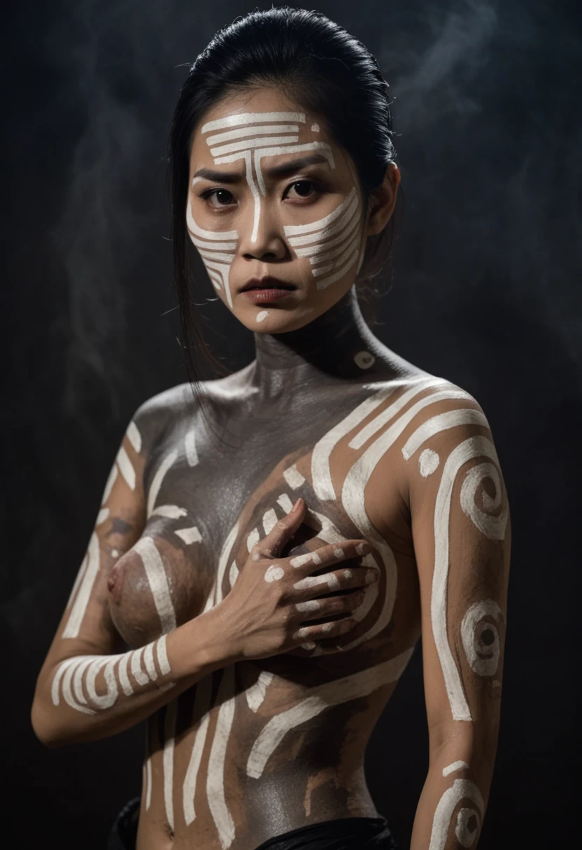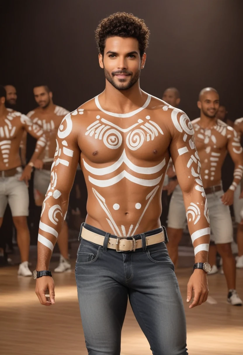 The body painting began when one musician forgot his costume and chose to paint himself, from there on it became a trend. Watch the history of the group (in brazilian portuguese) and how they came up with the painting style.