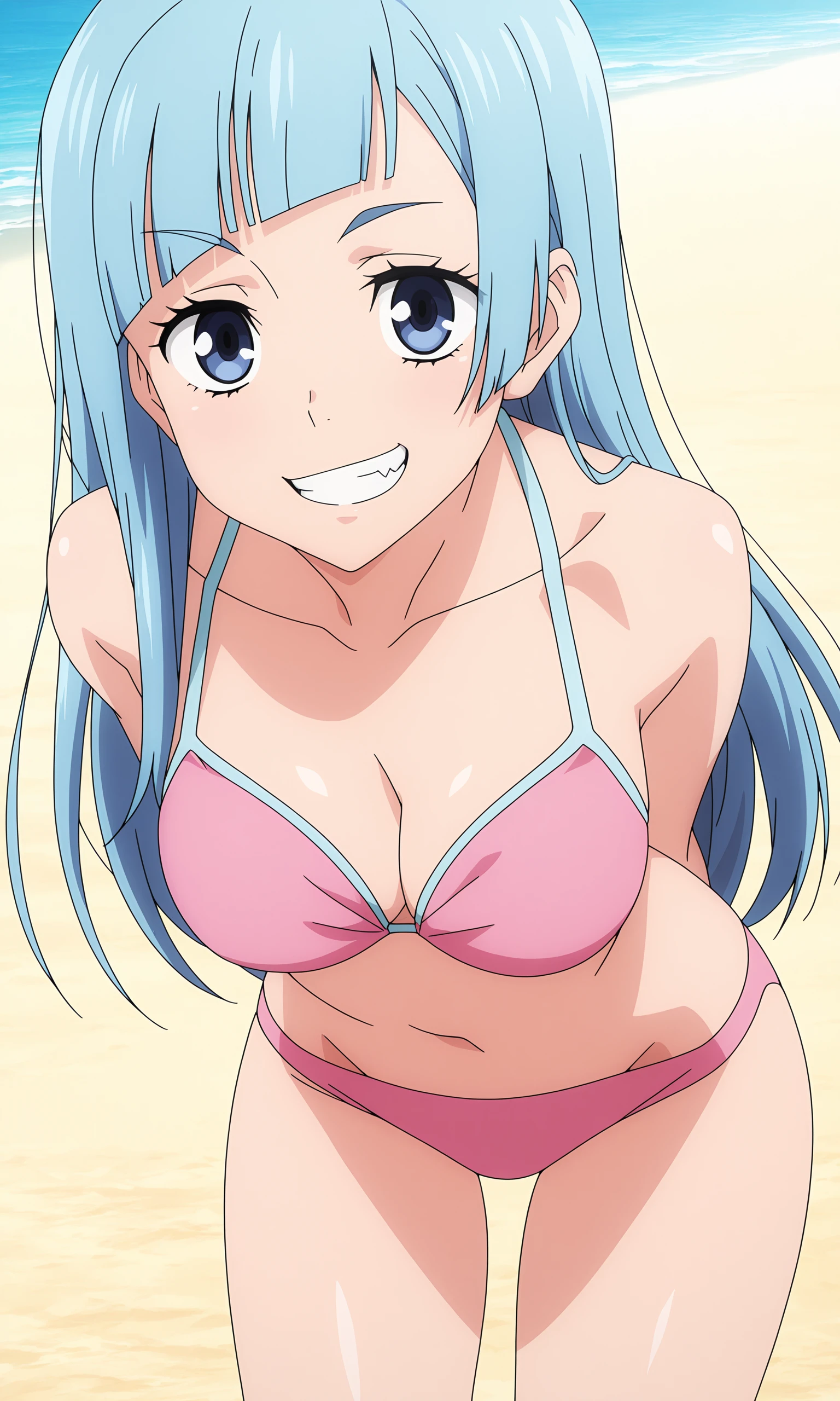 Kasumi, blue hair, long hair, blue eyes, blunt bangs,