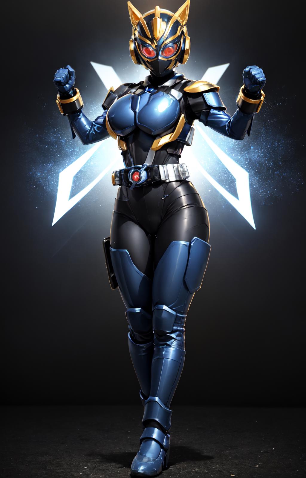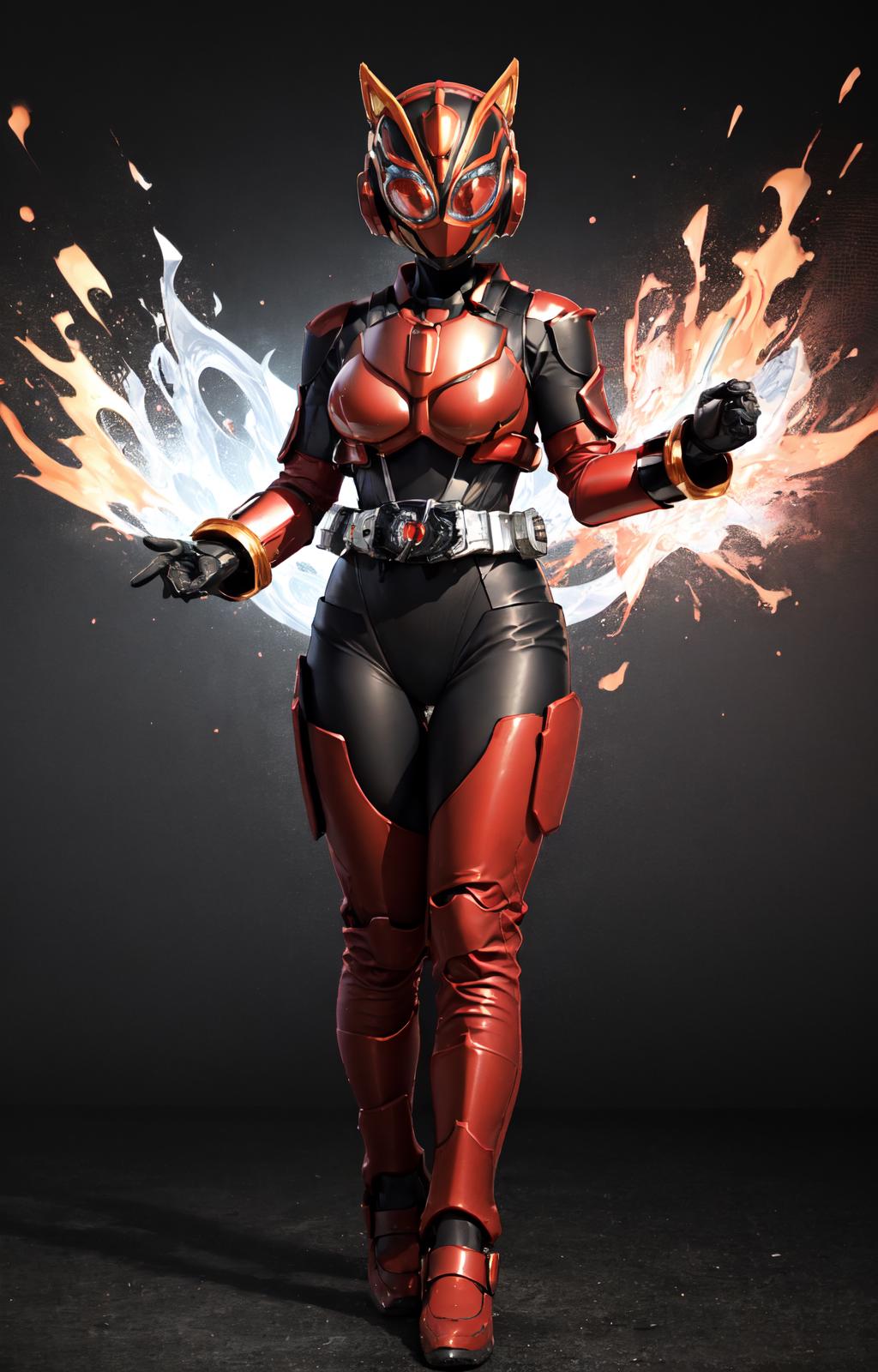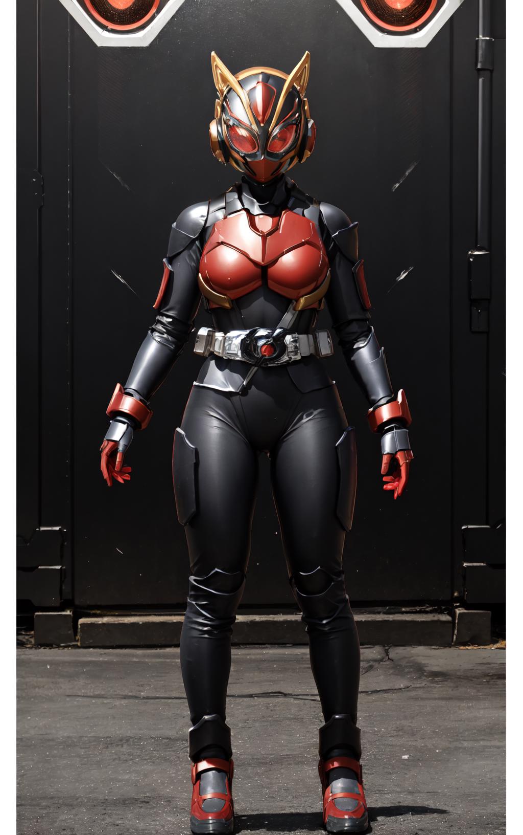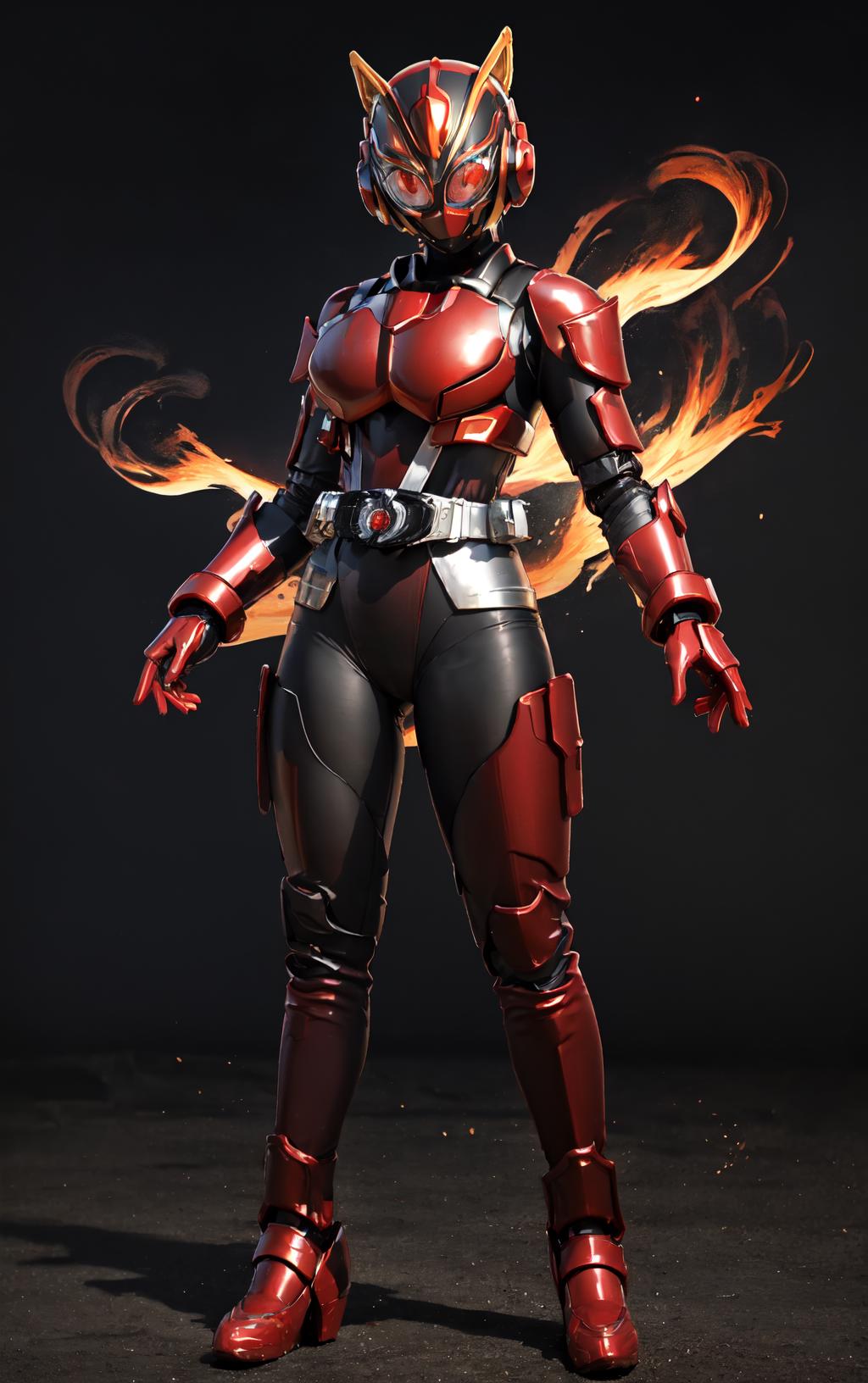 Prompts: gloves,rider belt, belt,bodysuit,helmet,cat ears, armor,mask,black gloves,handcuffs,black footwear,boots,fake animal ears,