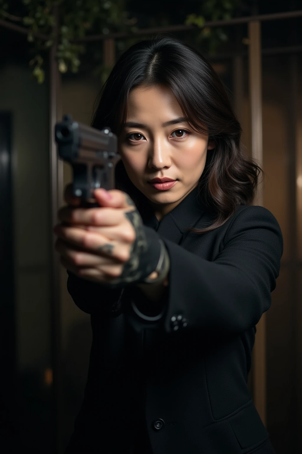 銃を持つ日本人女性