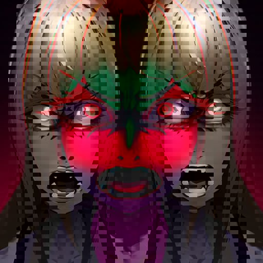 Helpful prompts: "crazy eyes, glowing eyes, wide eyed, clenched teeth, disgust, angry, smug grin, yandere trance, despair, scream."