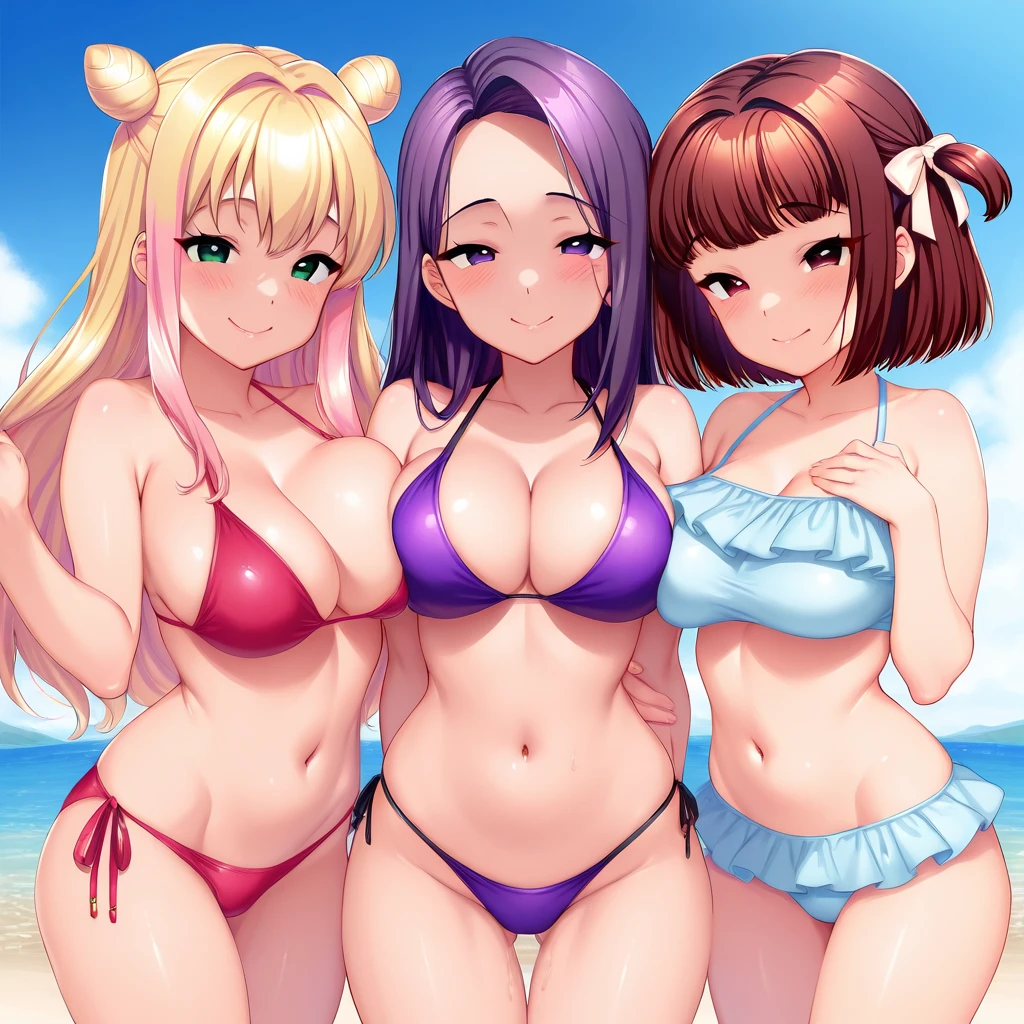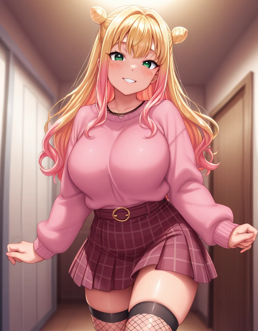 Manatsu Hidaka: 1girl, manatsu, blonde hair, green eyes, multicolored hair, pink hair, long hair,