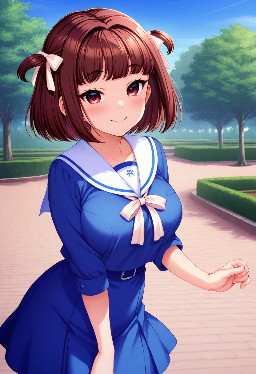 Fuyuka Manatsu: 1girl, fuyuka, brown eyes, brown hair, short hair, hair ribbon,