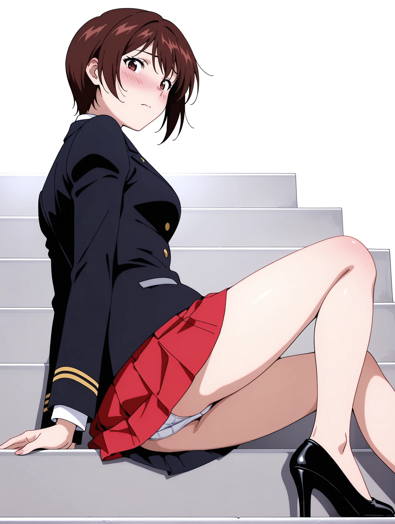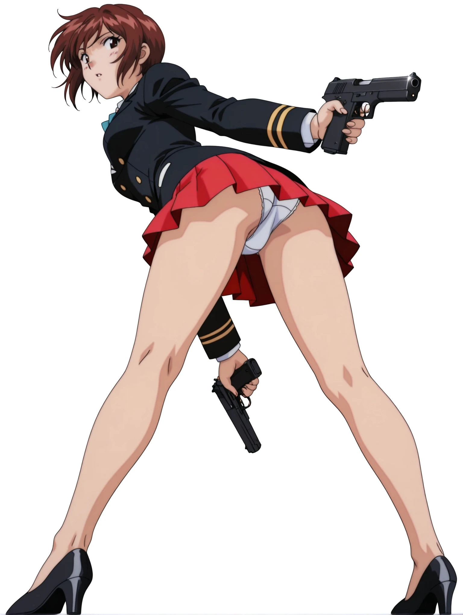 衣装ワード ・e_clothes,black jacket,red pleated skirt,white underwear,black high heels,