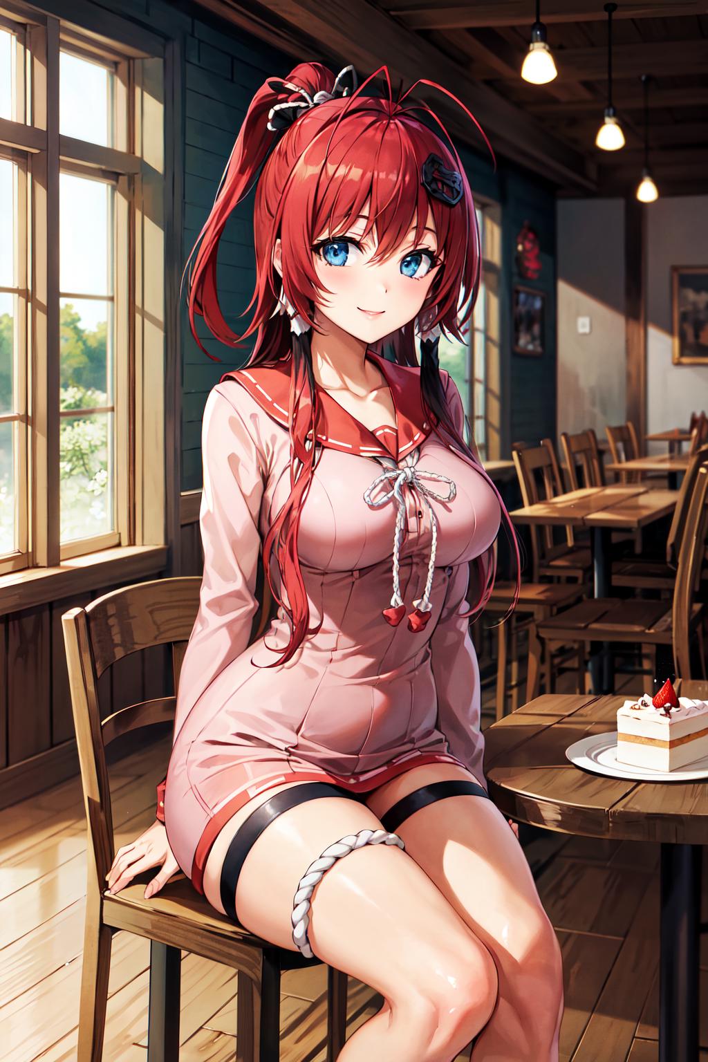 outfit1aayagyuu, long hair, antenna hair, hair ornament, pink shirt, rope, thigh strap