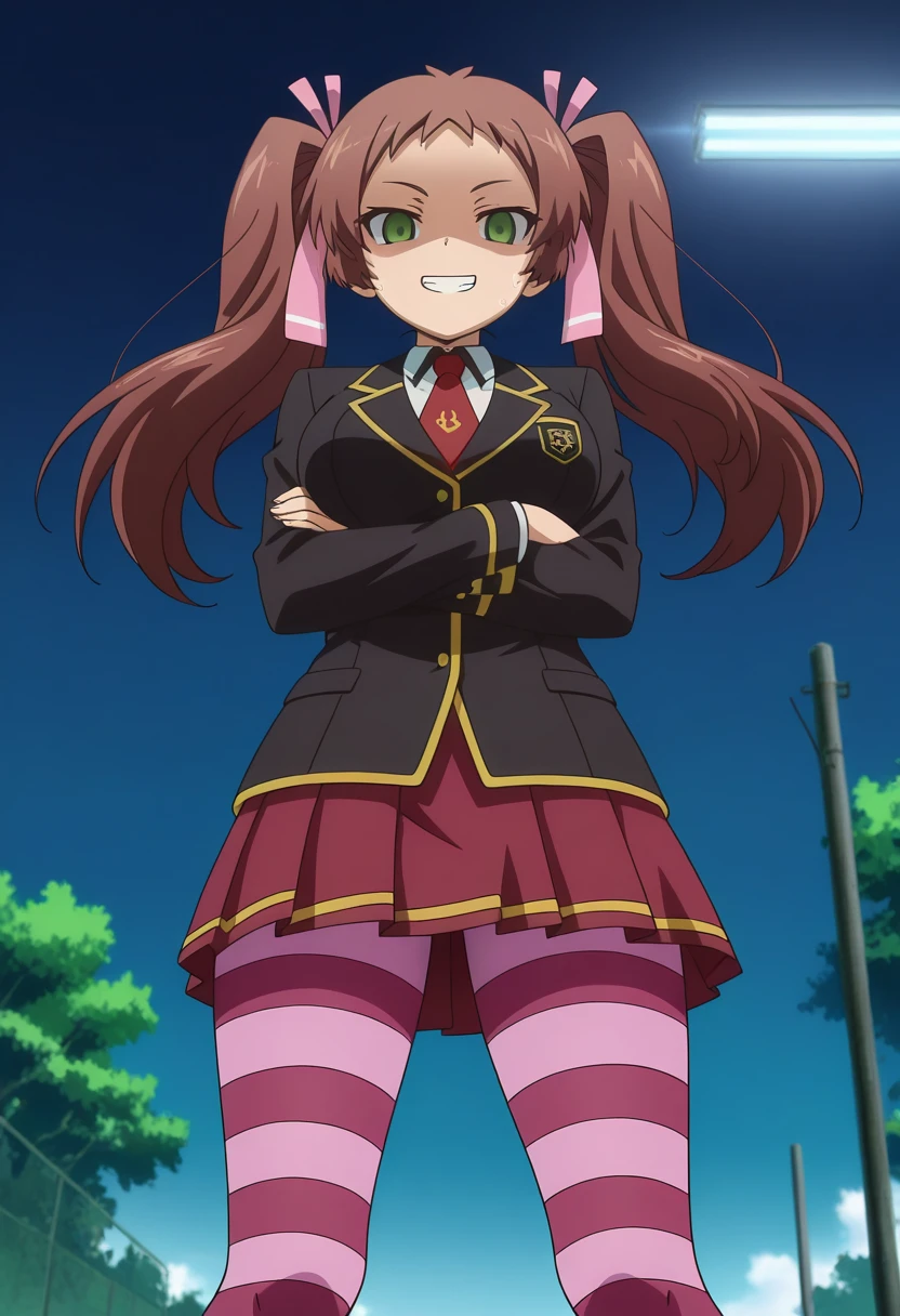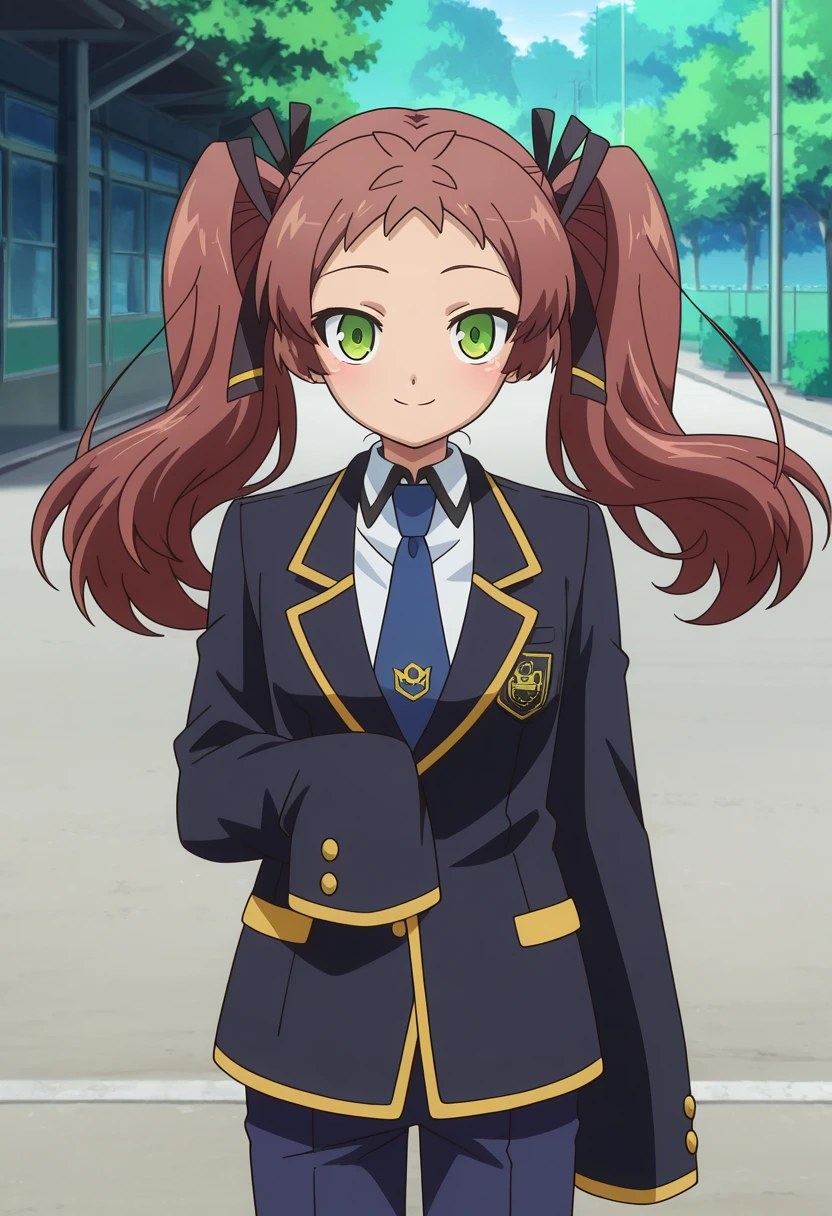 hazukiww, green eyes, brown hair, long hair, short bangs, twintails,
