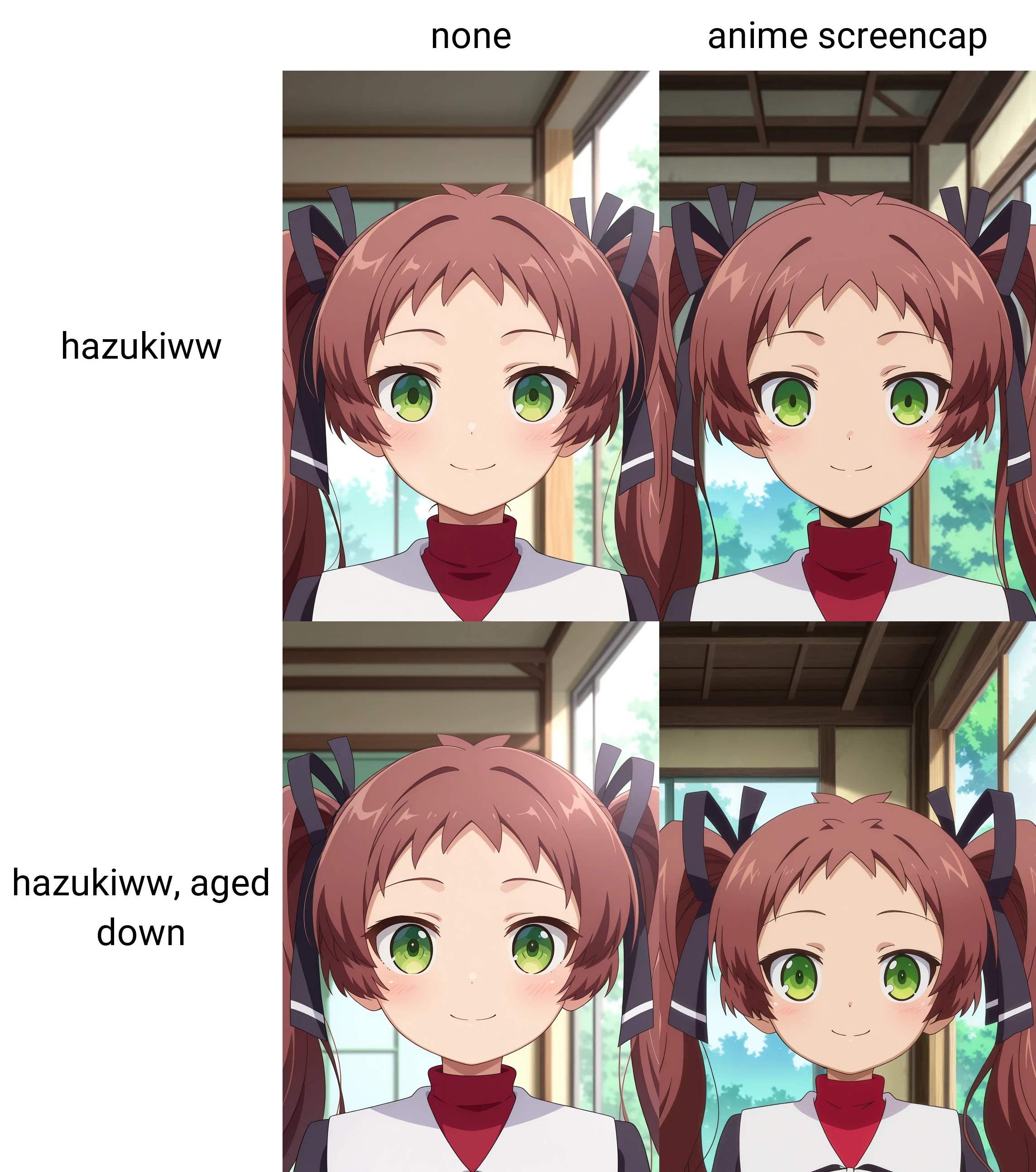 Without specifying "aged down", the character tends to look slightly more mature, but adding it may be more likely to trigger moderation checks.