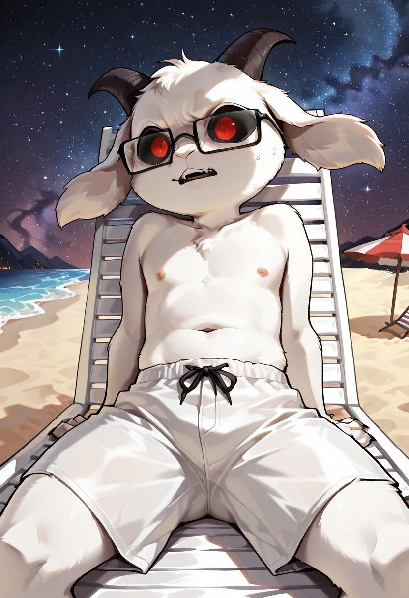 Triggers are: 1boy,shortstack,anthro,Paul,dokkaebi,red eyes,black sclera,white fur,goat ears,horns,furry,