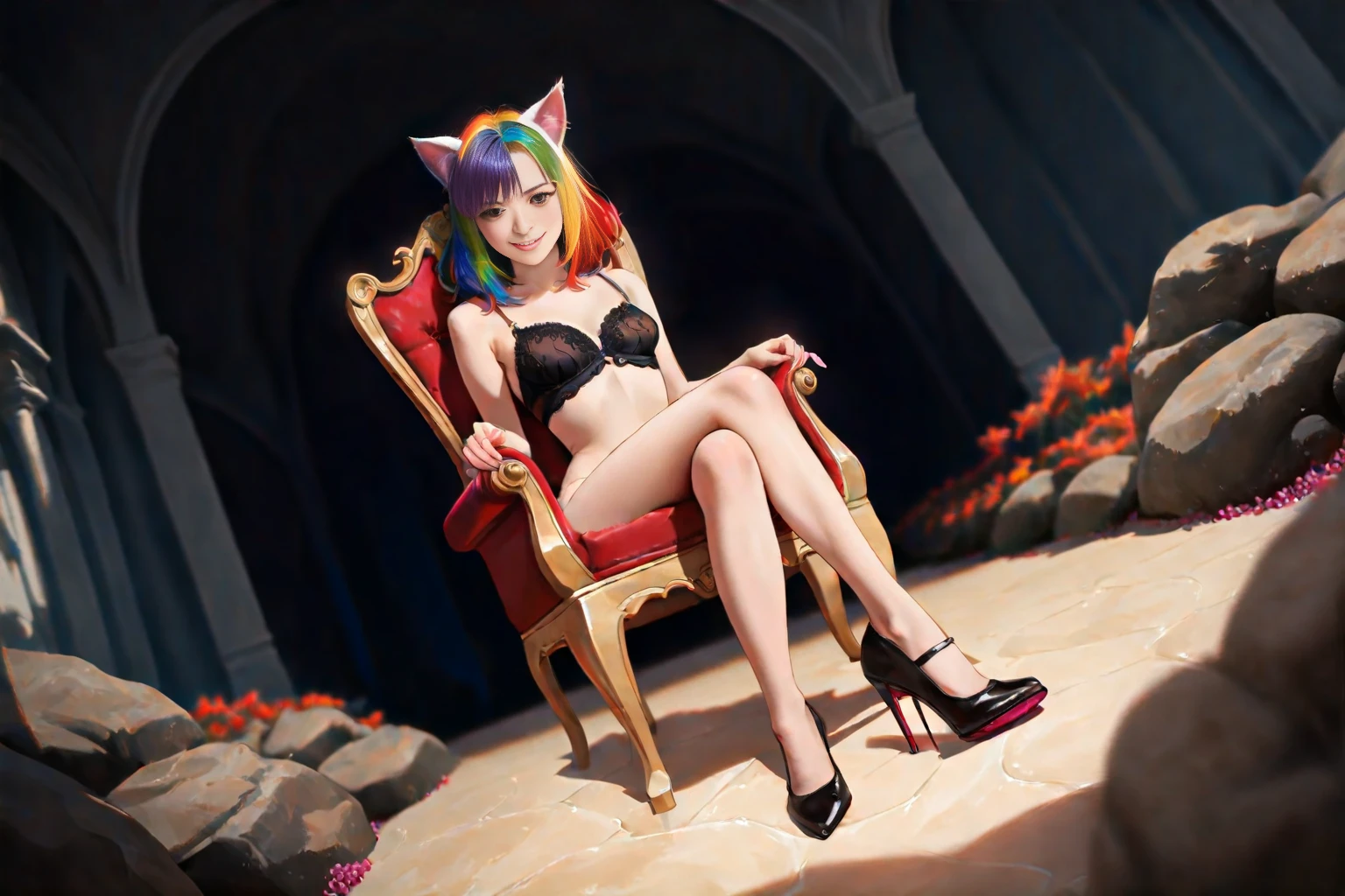 Created using images from a @KpopKitten bounty as well as her avatar's galleries, converted to fantasy genre with a realistic style and backgrounds..