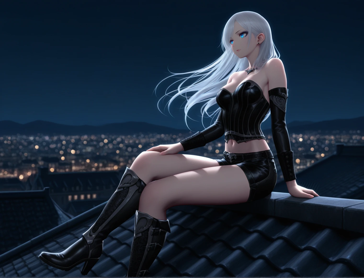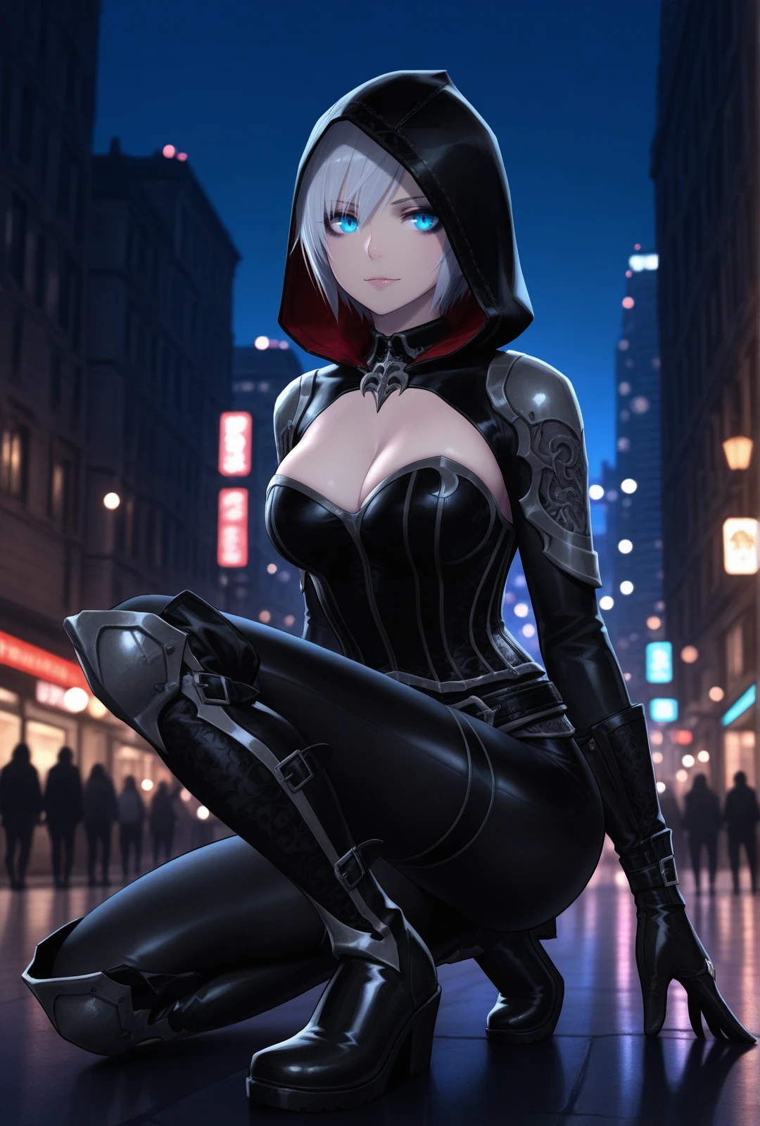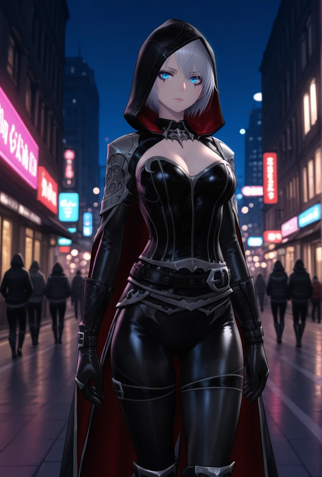 hood, corset, gloves, leggings, boots