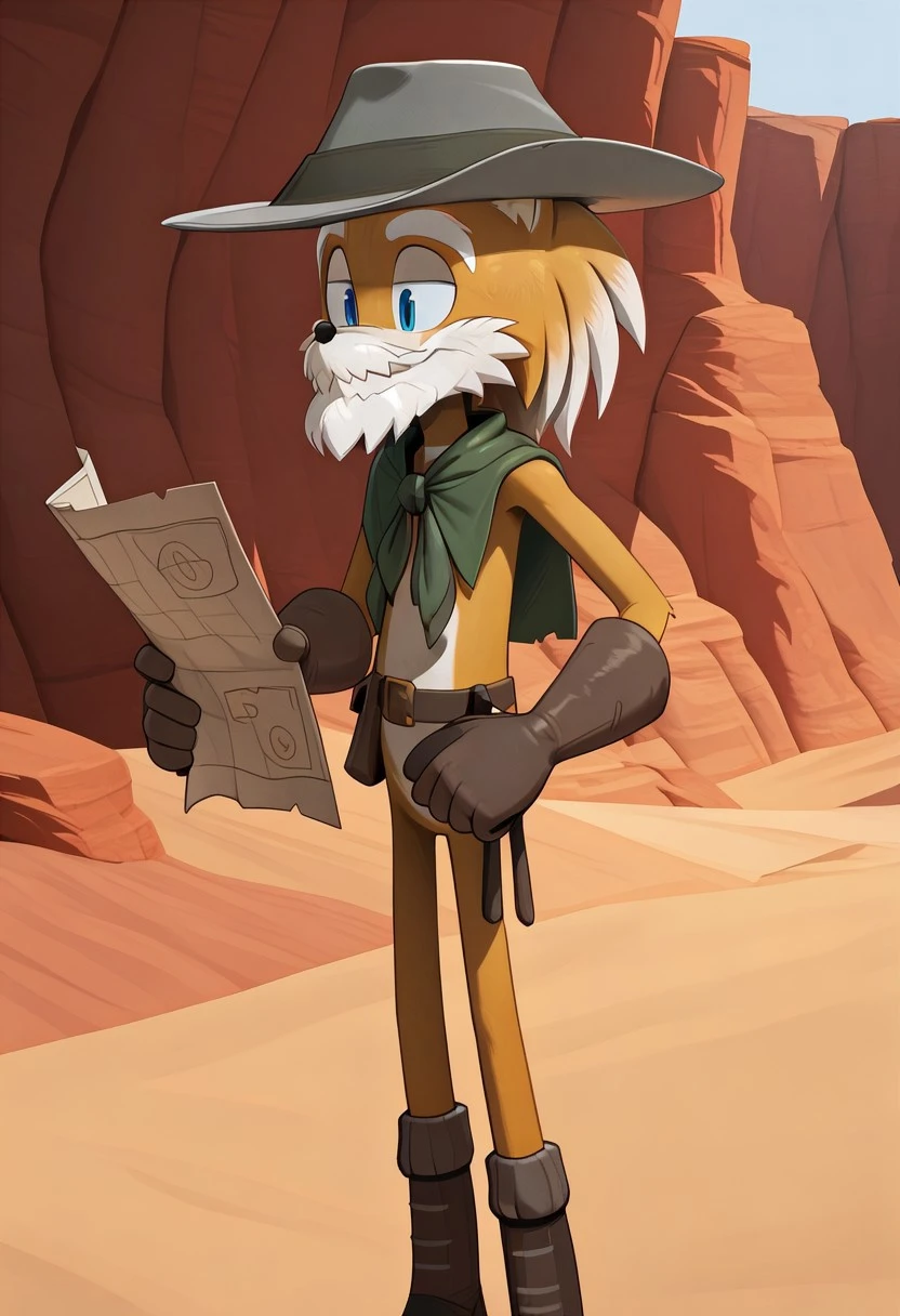 Cliff, furry, light yellow fur, blue eyes, long white beard, white eyebrows, gray hat, brown belt, brown gloves, brown boots
