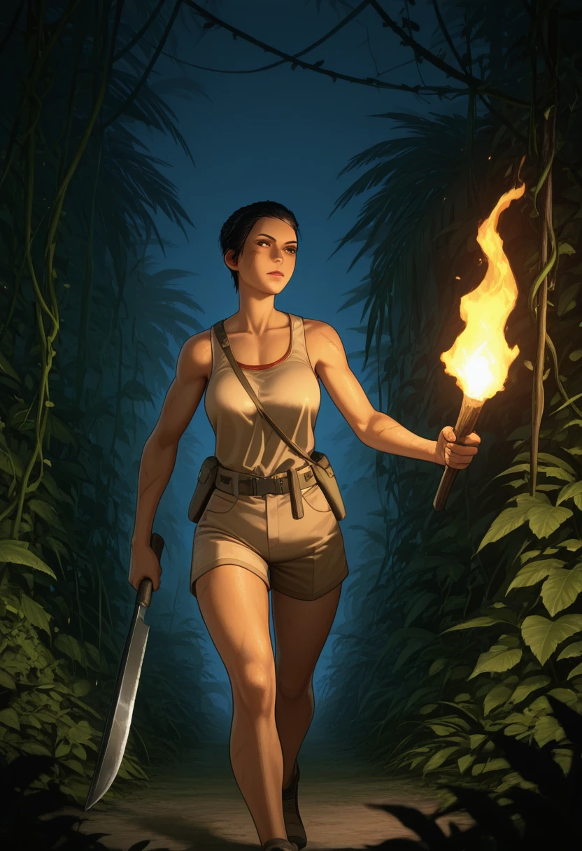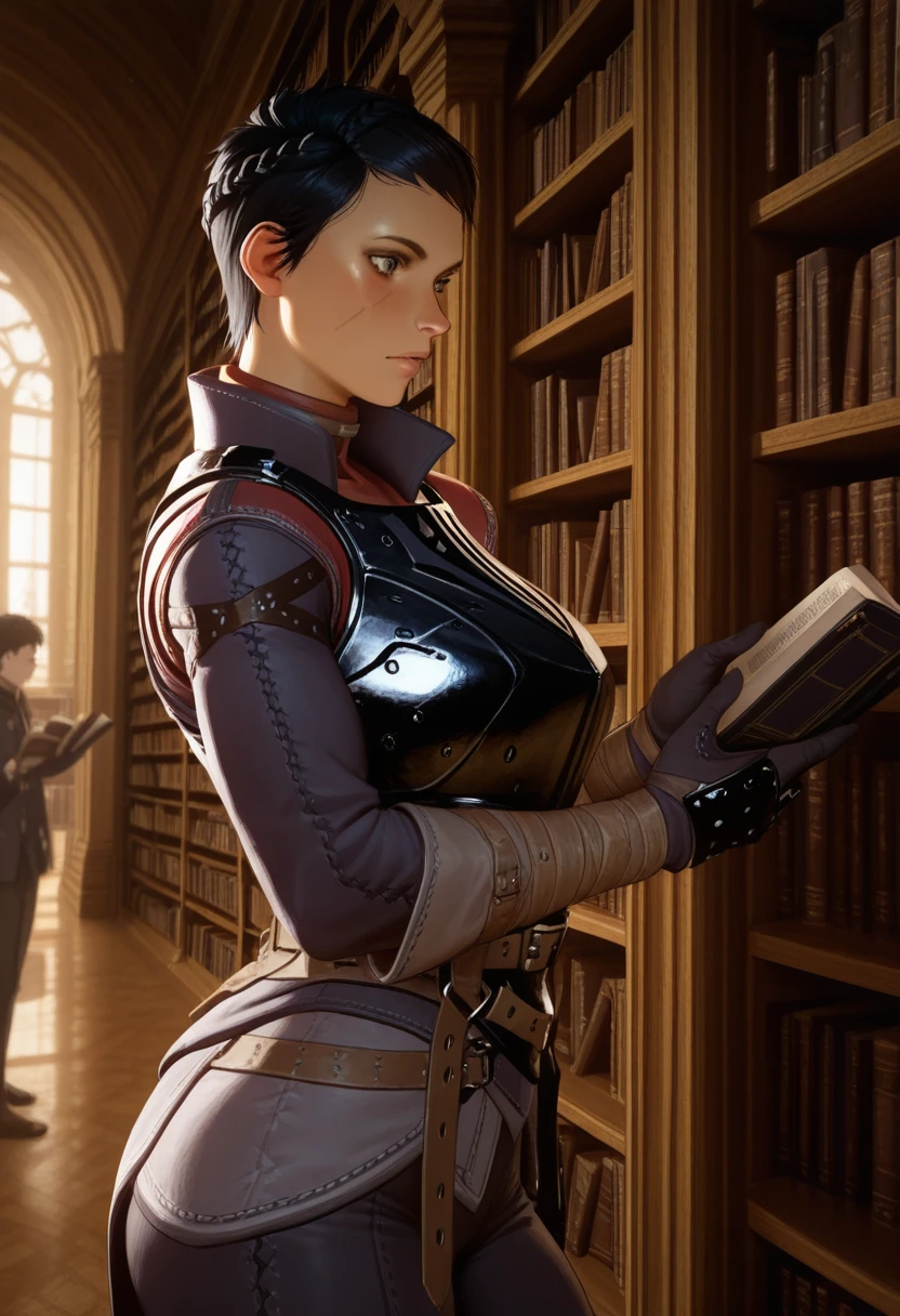 Default DAI Look: dacassandra, solo, 1girl, scar, armor, jacket, gauntlets