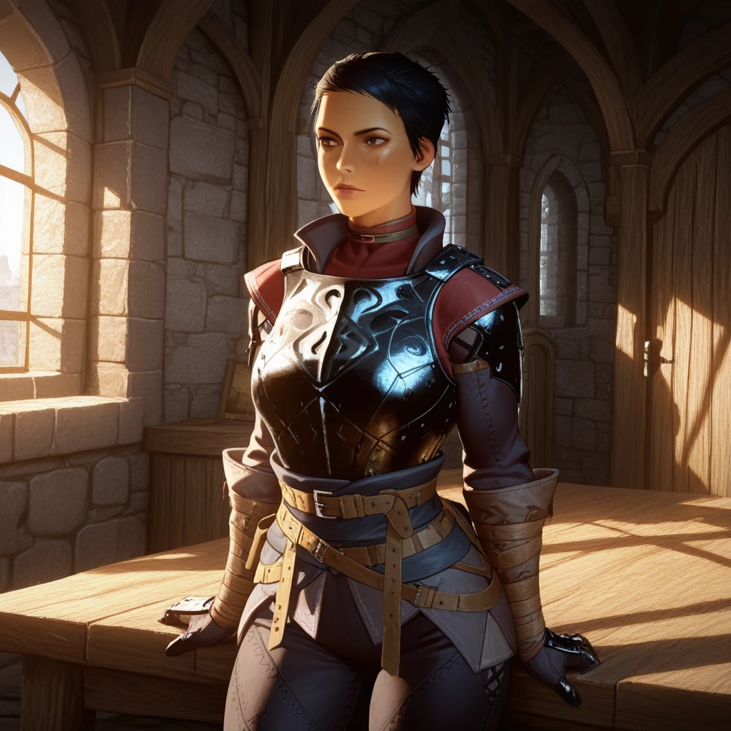 Cassandra Pentaghast from the Dragon Age series. Seeker of the Chantry, Right Hand of the Divine. Training data was taken from the 3rd game, Dragon Age Inquisition.
