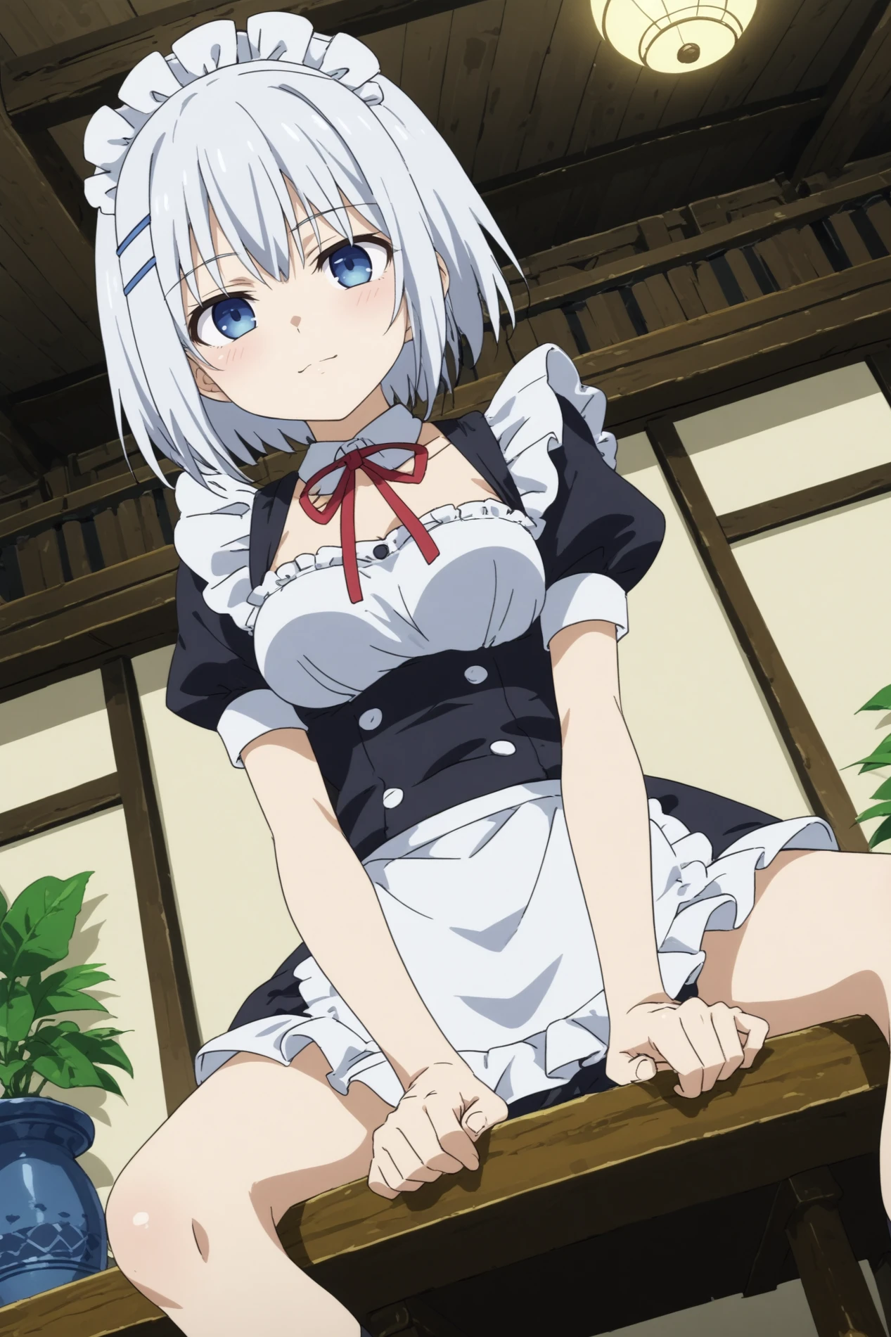 Maid : 1girl,solo,tobiichi origami,long hair,short hair,hair ornament,hairclip,breasts,maid headdress,maid