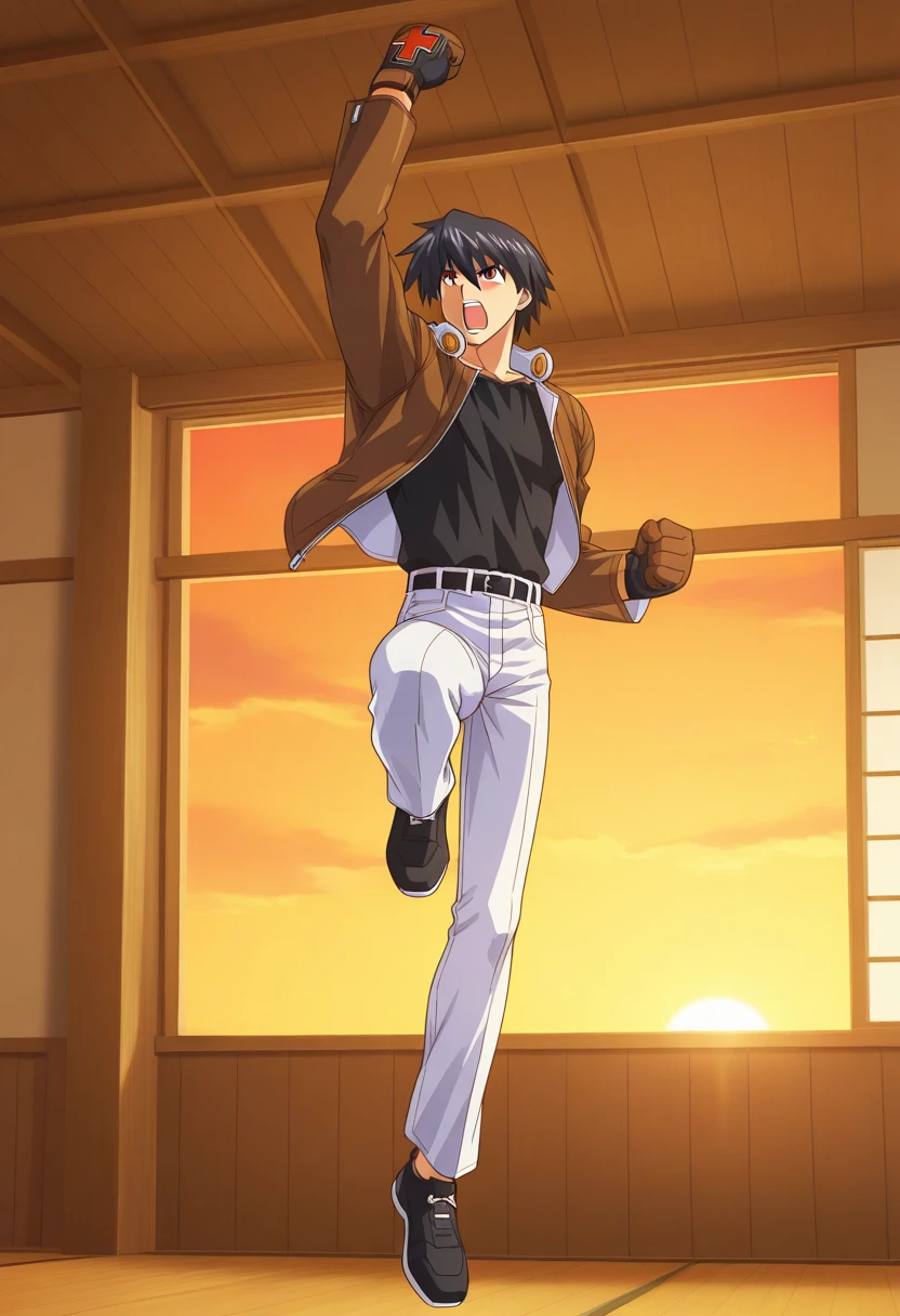 shoryudp, arm up, punching, uppercut, knee up, jumping