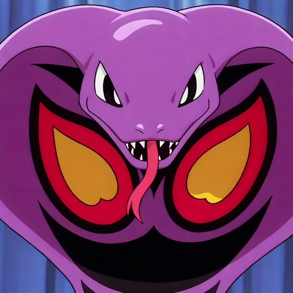 Arbok the cobra from pokemon, Anime 2D, solo, different angles poses, cobra-hood, 1boy, no-human, identical colors scales,