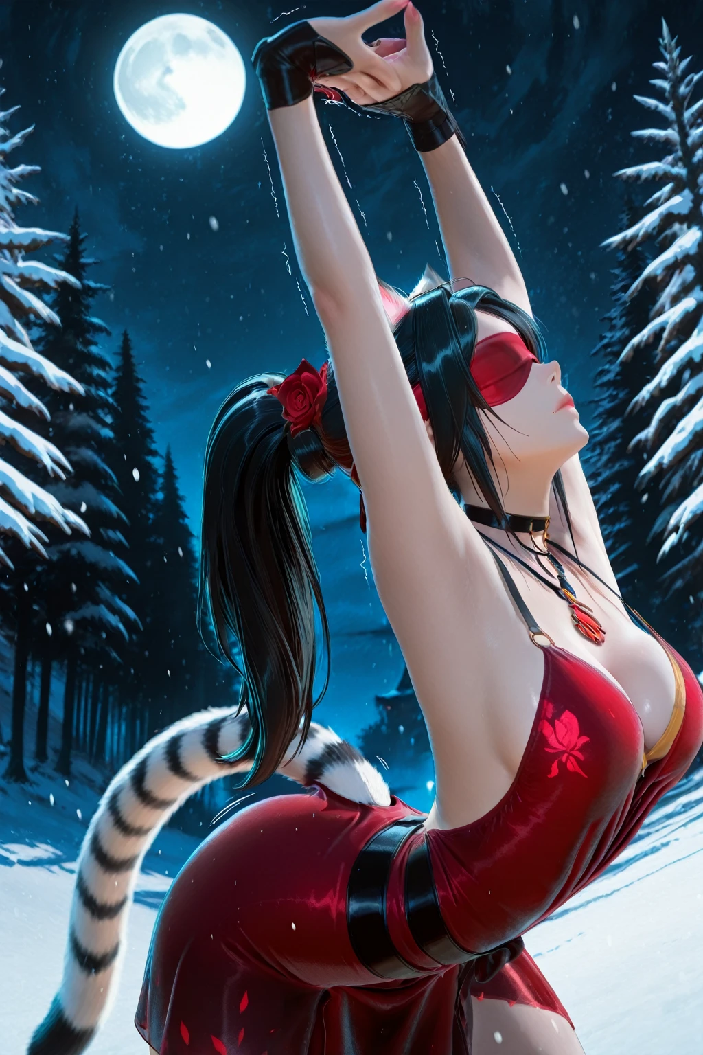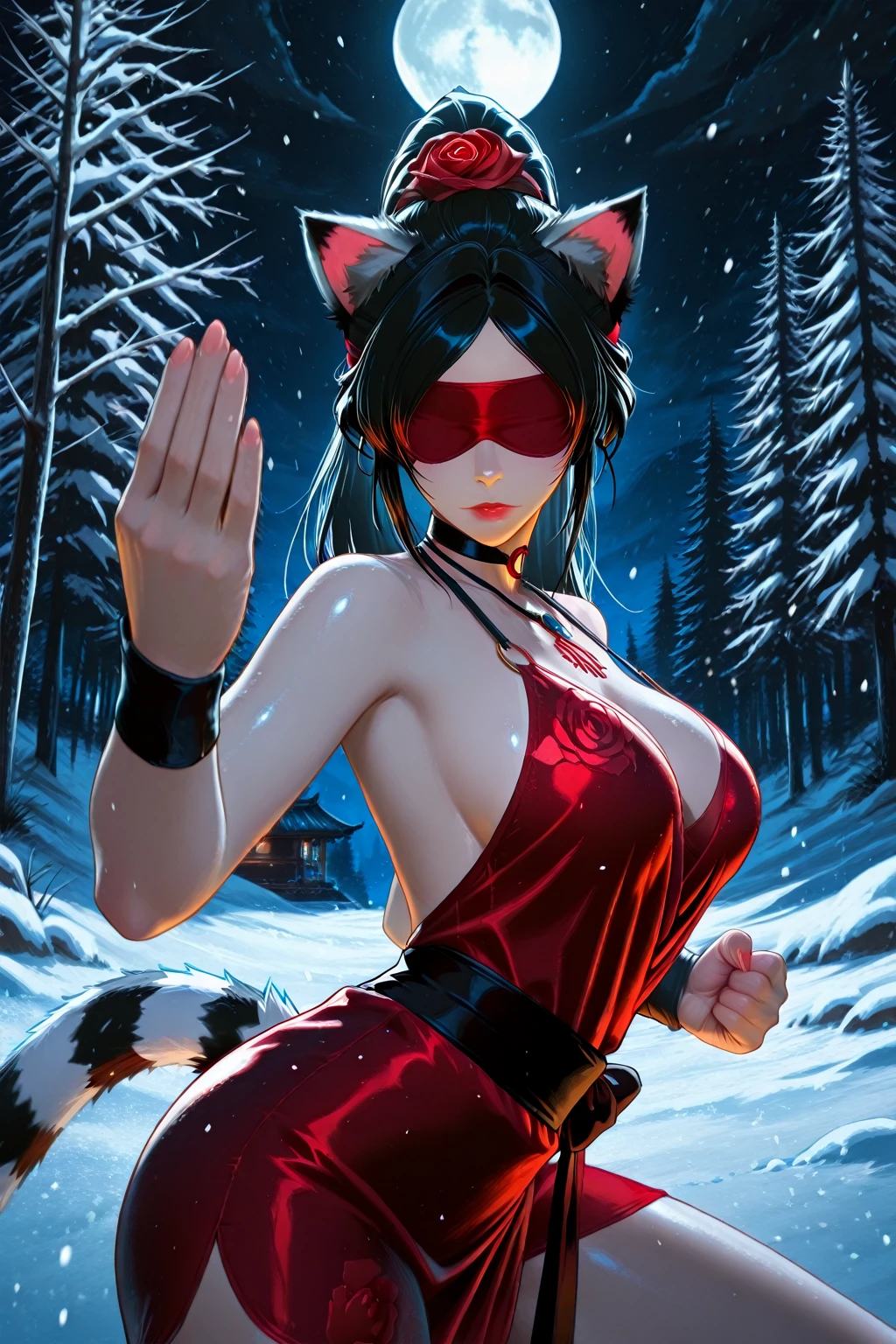 面部触发词(Facial trigger word): black hair,hair flower,ponytail,red_blindfold,red_lips_,