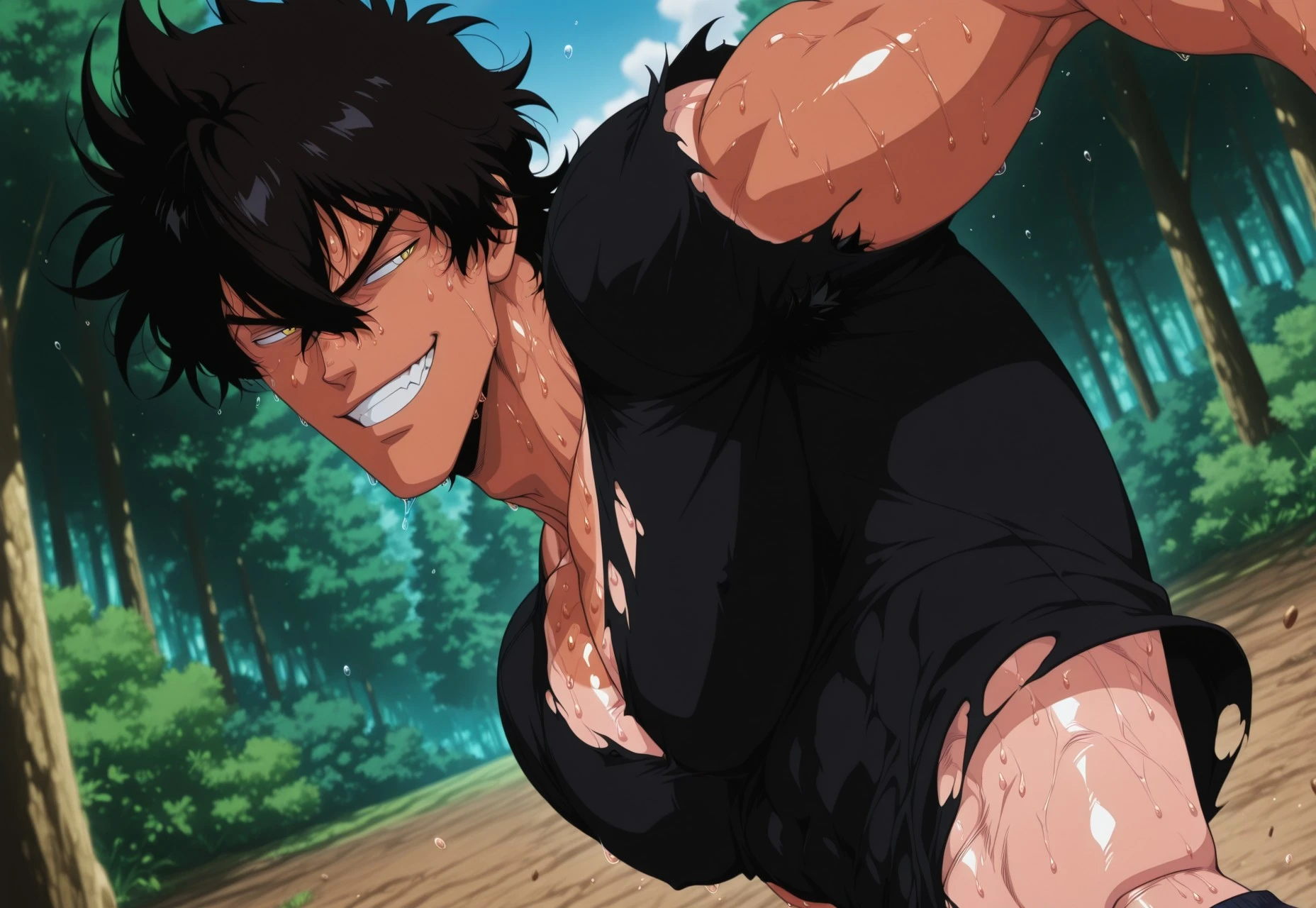 Yuno, black hair, hair between eyes, yellow eyes, fur trimmed uniform