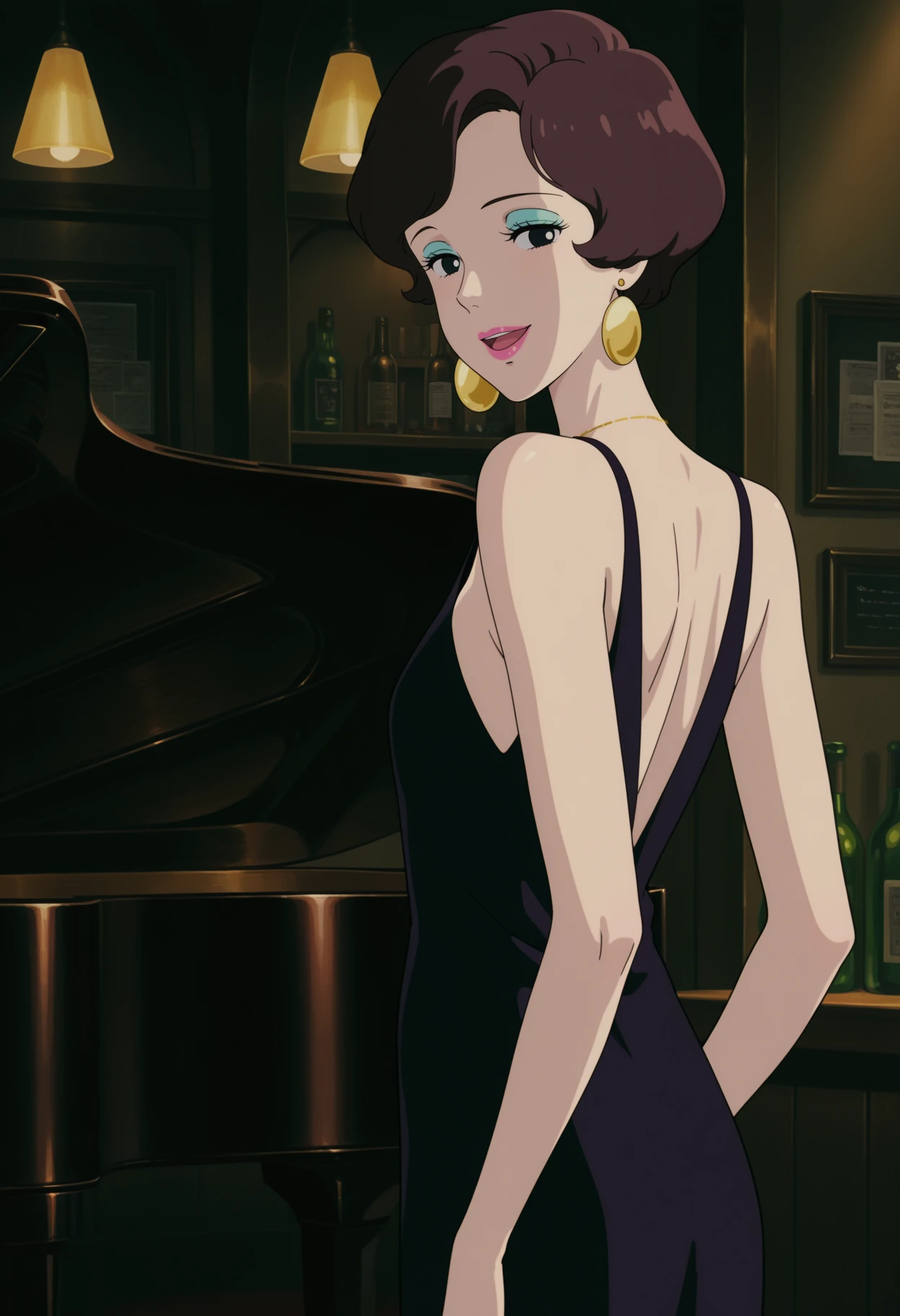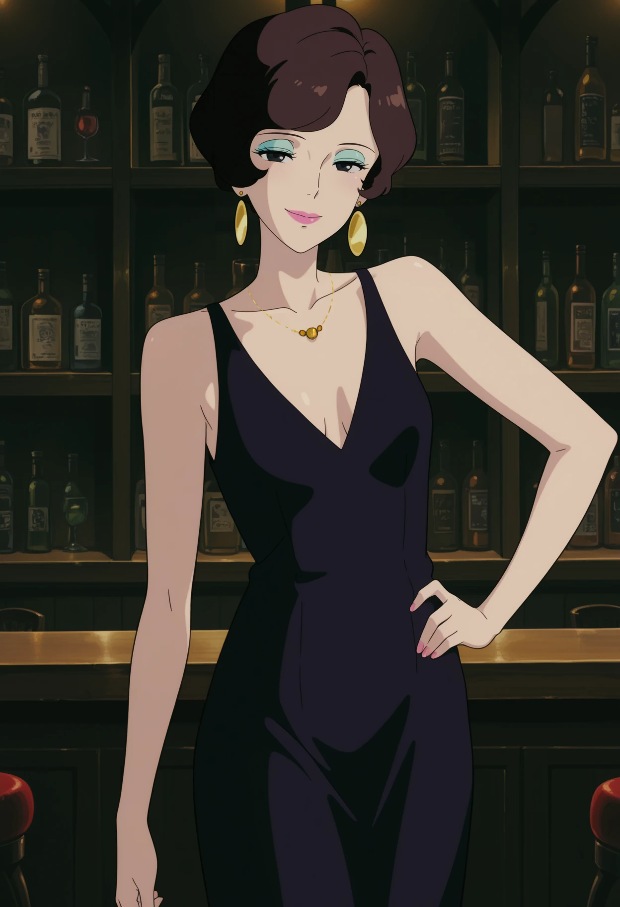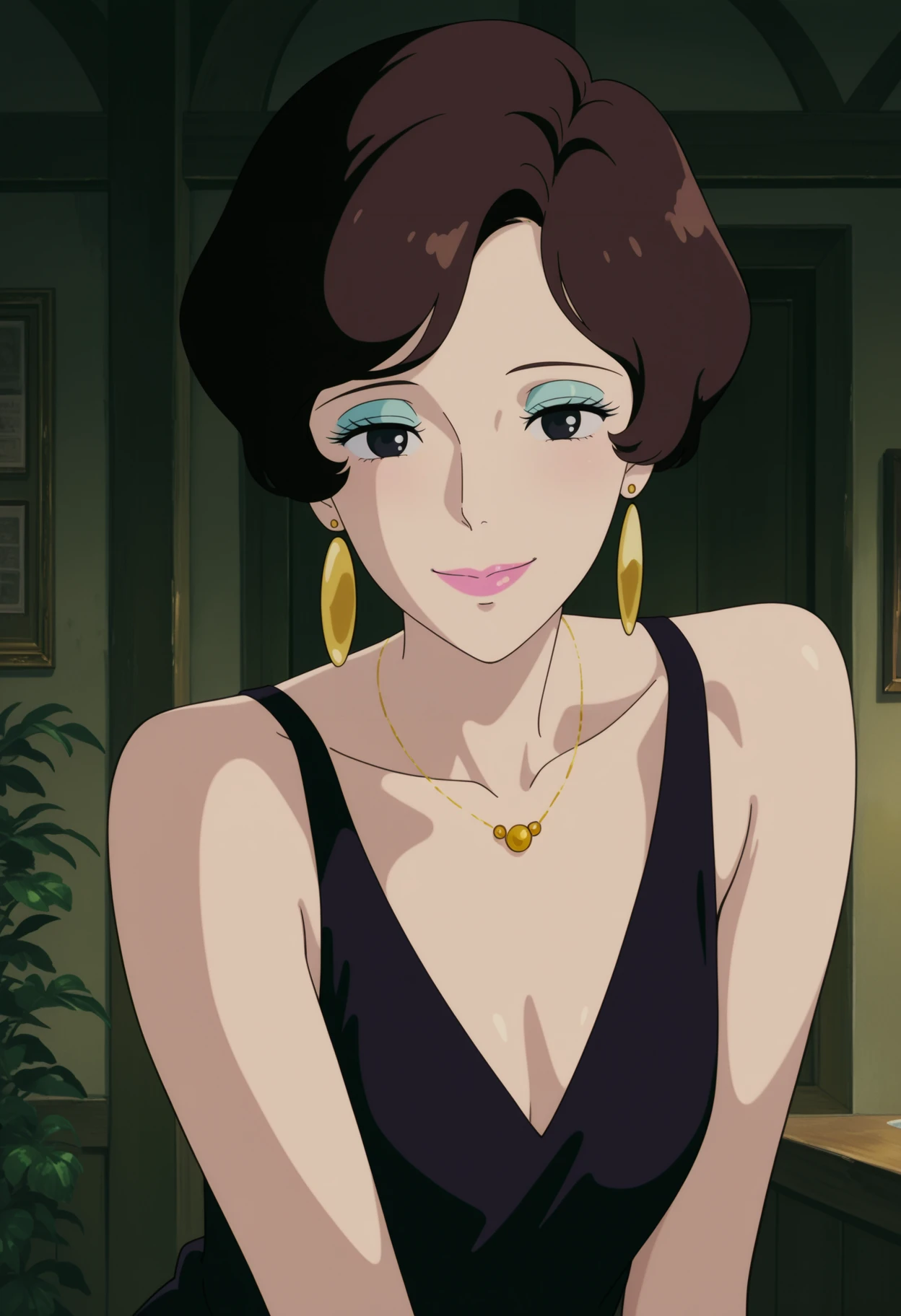 1girl,solo,mm,mature female,makeup,lipstick,eyeshadow,short hair,brown hair,black eyes,small breasts,anime coloring