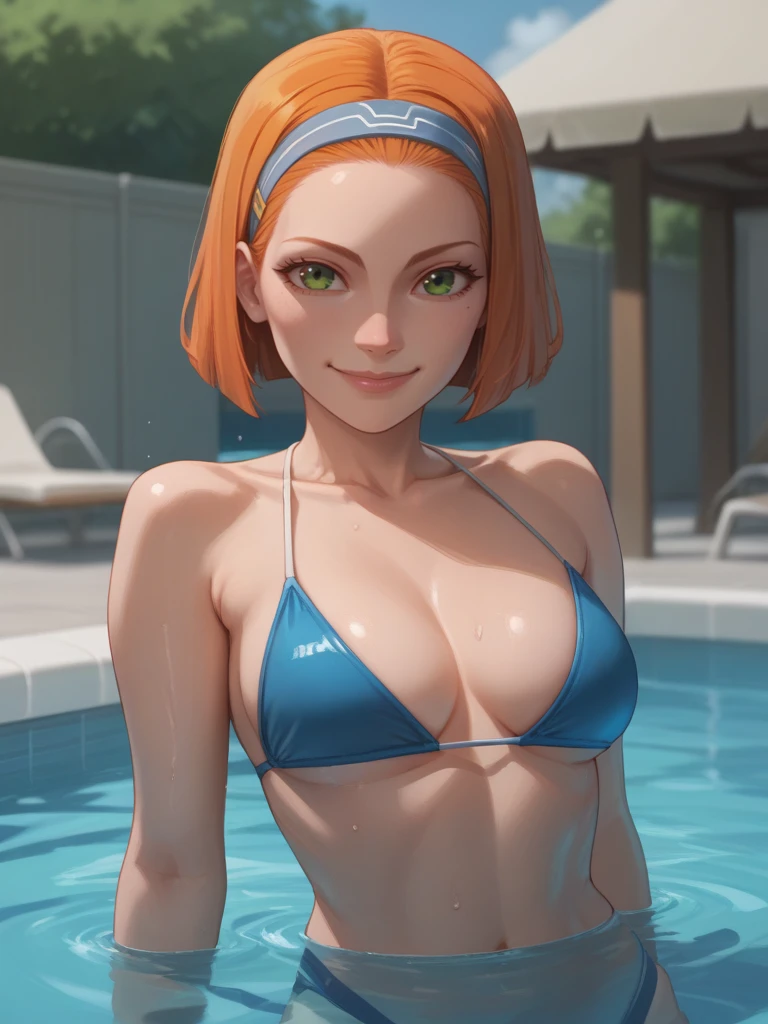 BoKatan, 1girl, orange hair, short hair, hairband, hair ornament, bob cut, green eyes,