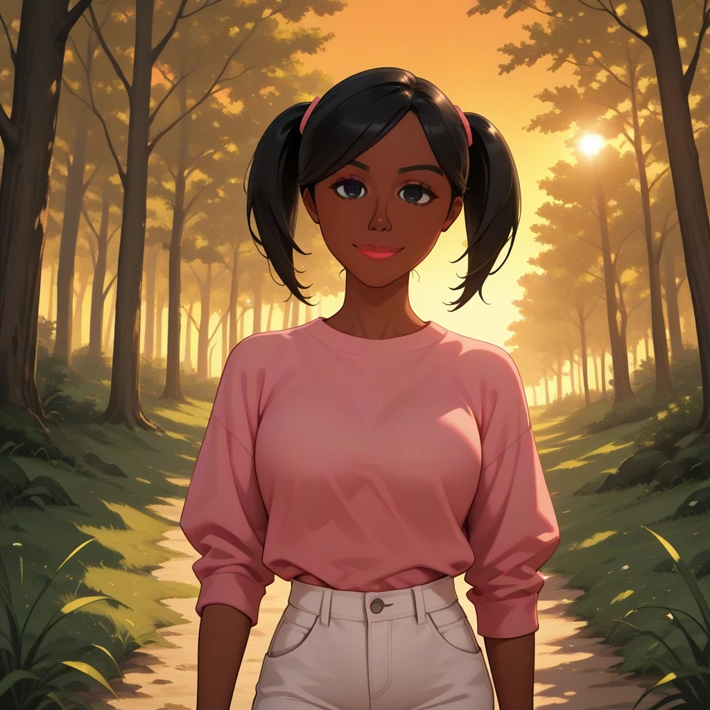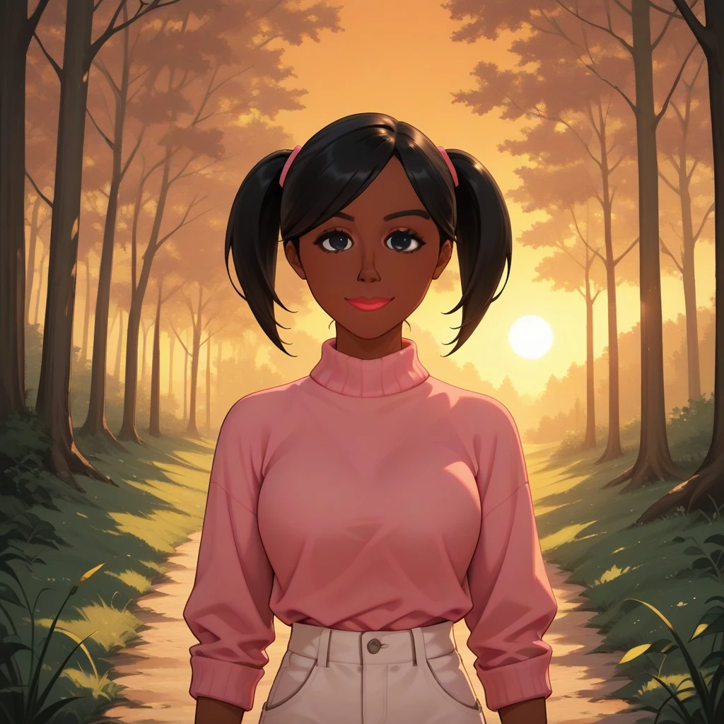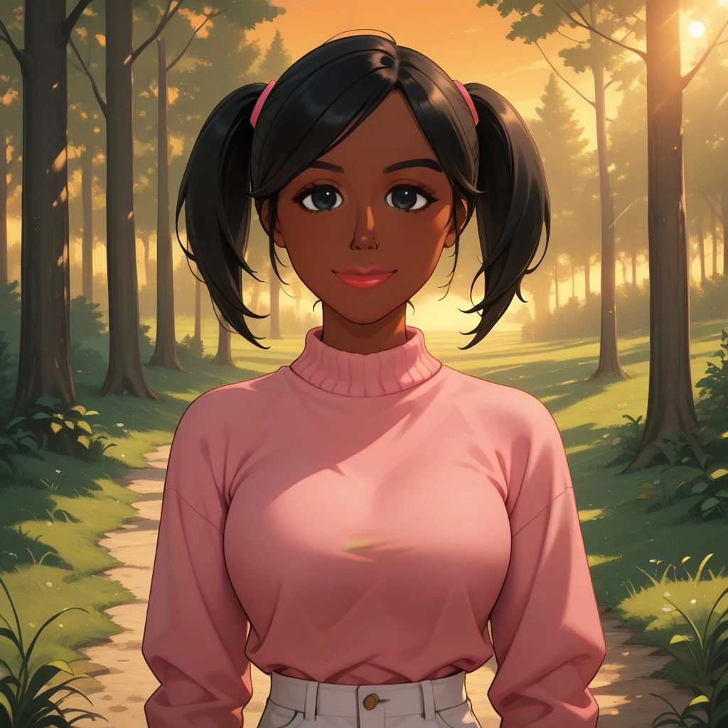 JessicaJO, 1girl, dark skin, dark-skinned female, black hair, twintails, black eyes, lips