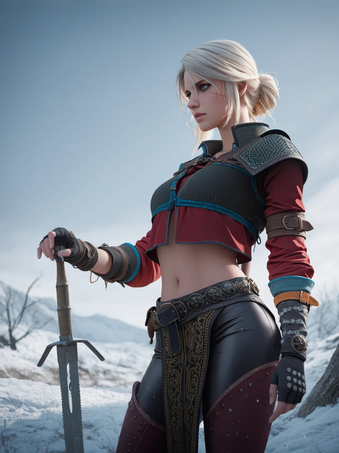 Recommended weight: 0.8. Model for Cirilla Fiona Elen Riannon, Queen of Cintra, Princess of Brugge and Duchess of Sodden, heiress to Inis Ard Skellig and Suzeraine of Attre and Abb Yarra Ciri from Witcher series, that's it. Includes her looks and outfits from Witcher 3 and the upcoming game with all we have access this far. Flexible for styles and clothes, responsive and compatible with other models. Due to the ample and assorted dataset, you might need to be more descriptive with your prompt to get tighter results, still the triggers should help you with half of the battle.