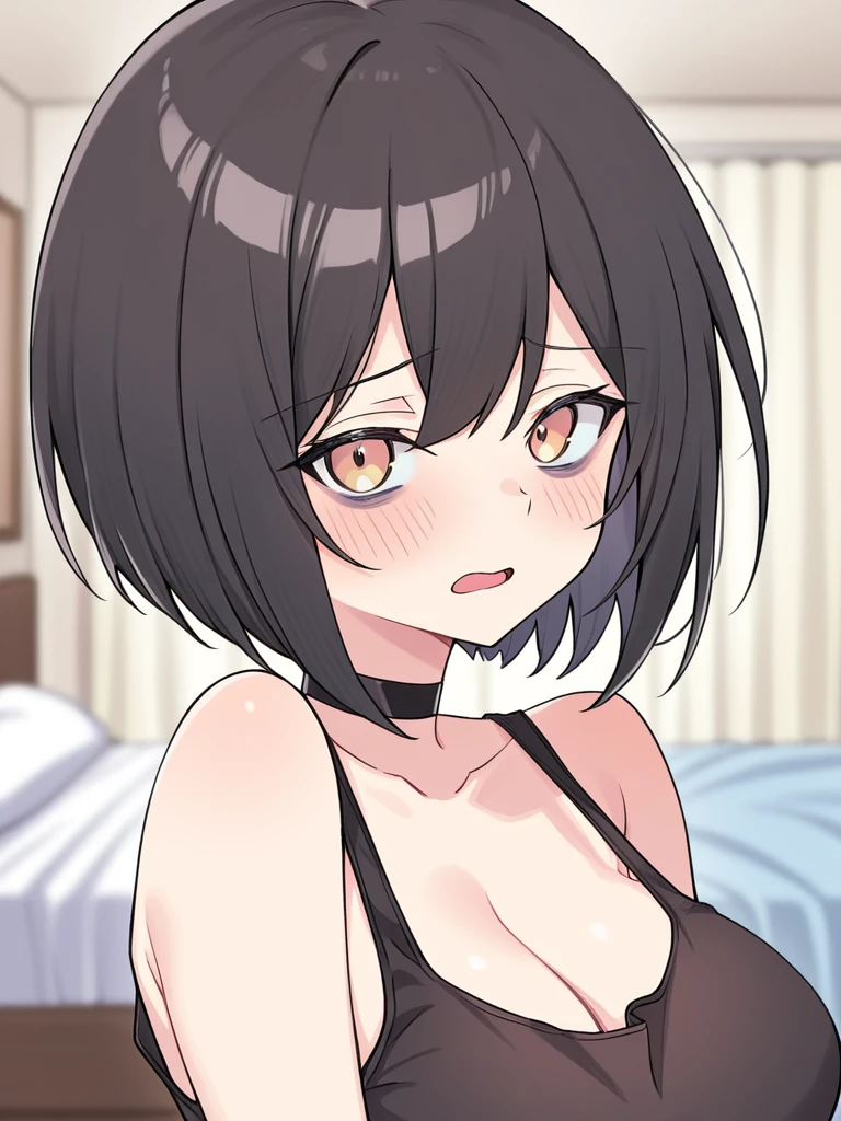 anri sr, medium hair, black hair, large breasts,