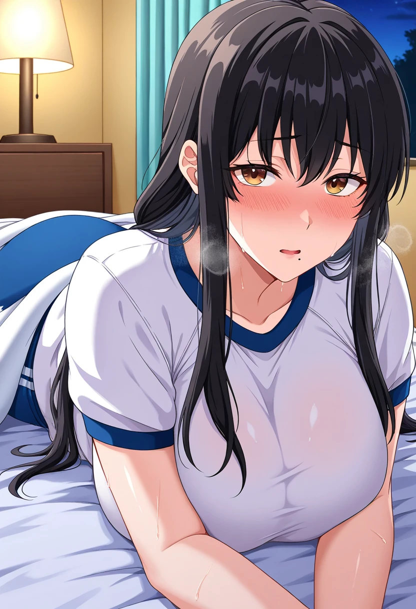 risaww, mature female, black hair, brown eyes, long hair, sidelocks, mole under mouth, large breasts,