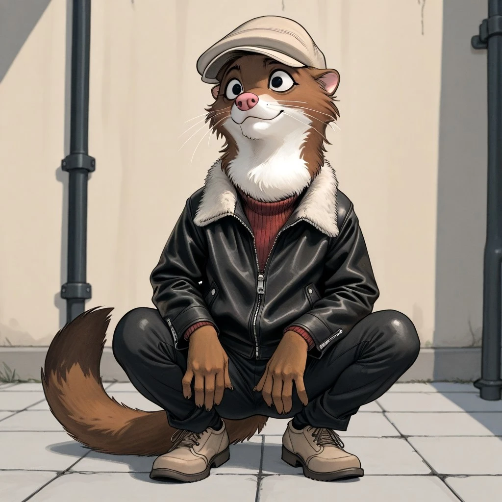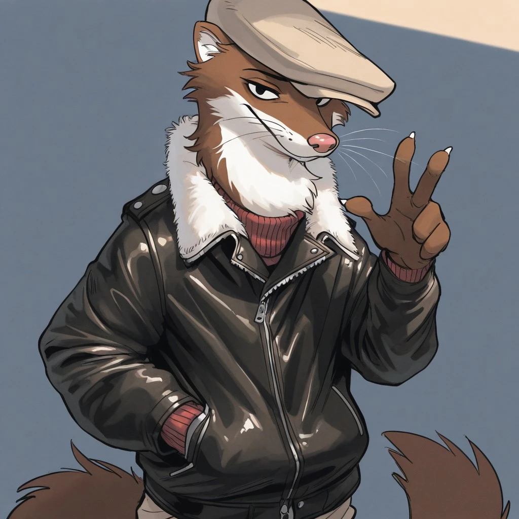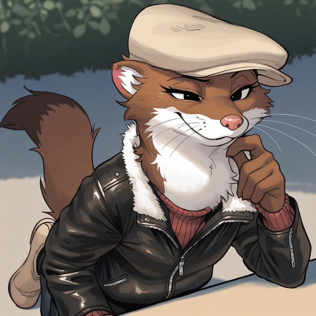 Weekly, Anthro Weasel, Lesser Weasel, brown weasel, brown fur, white chin, white neck, white inner ear, black eyebrows, black eyes, pink nose, whiskers, shortstack,