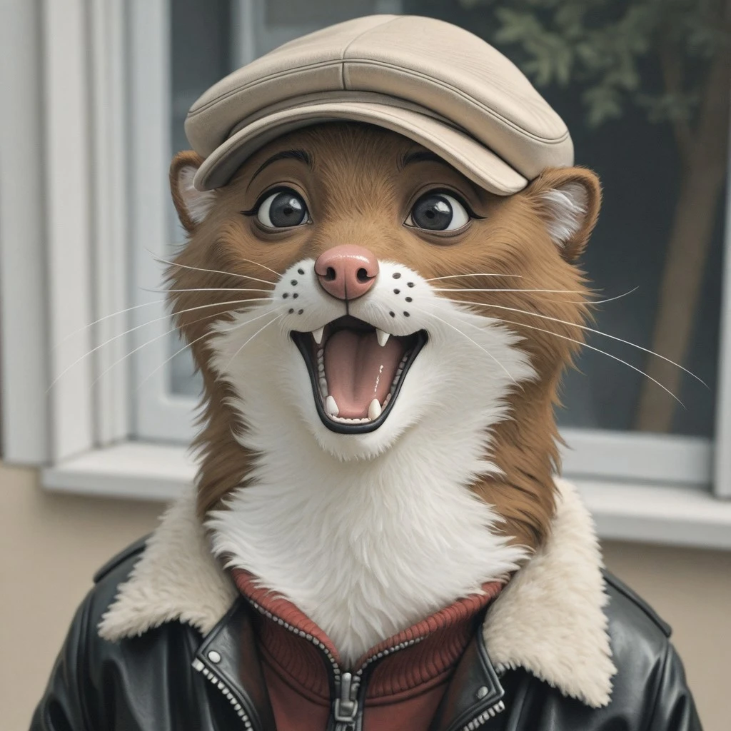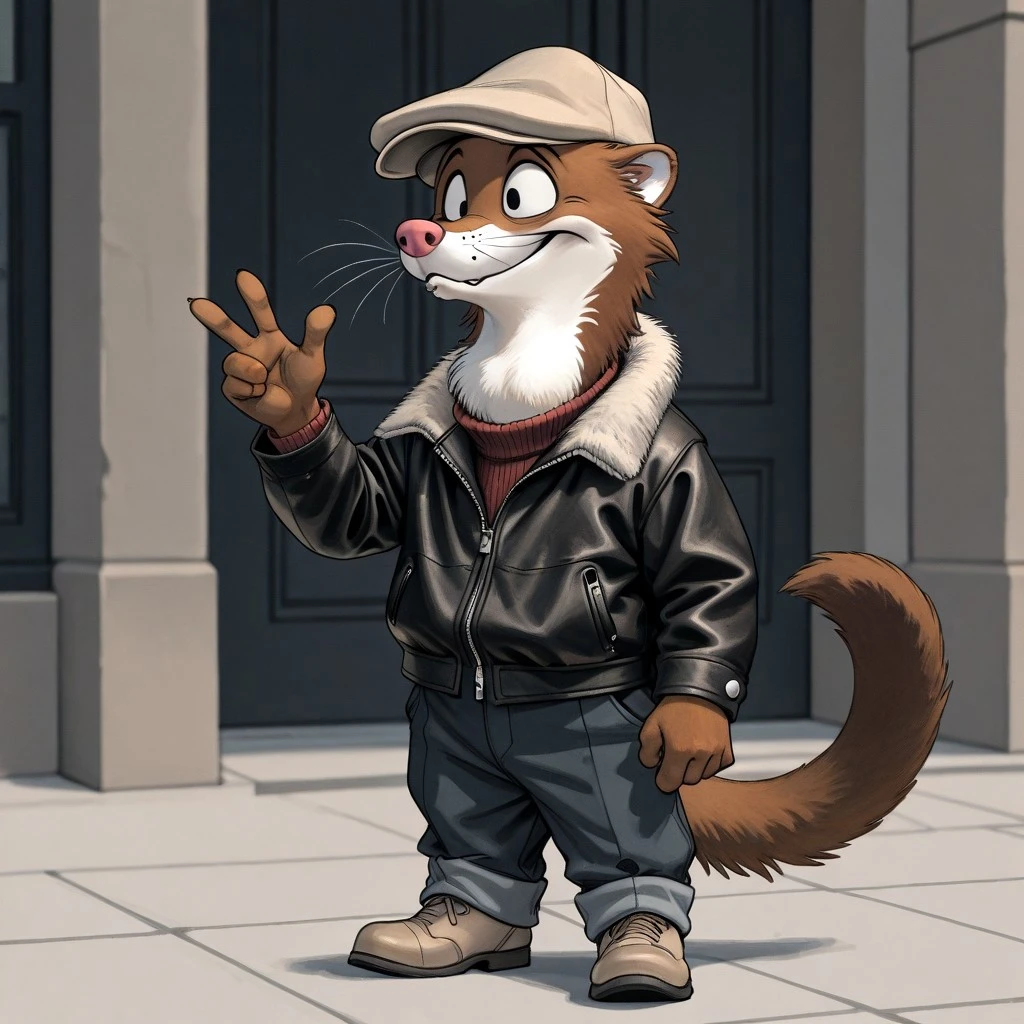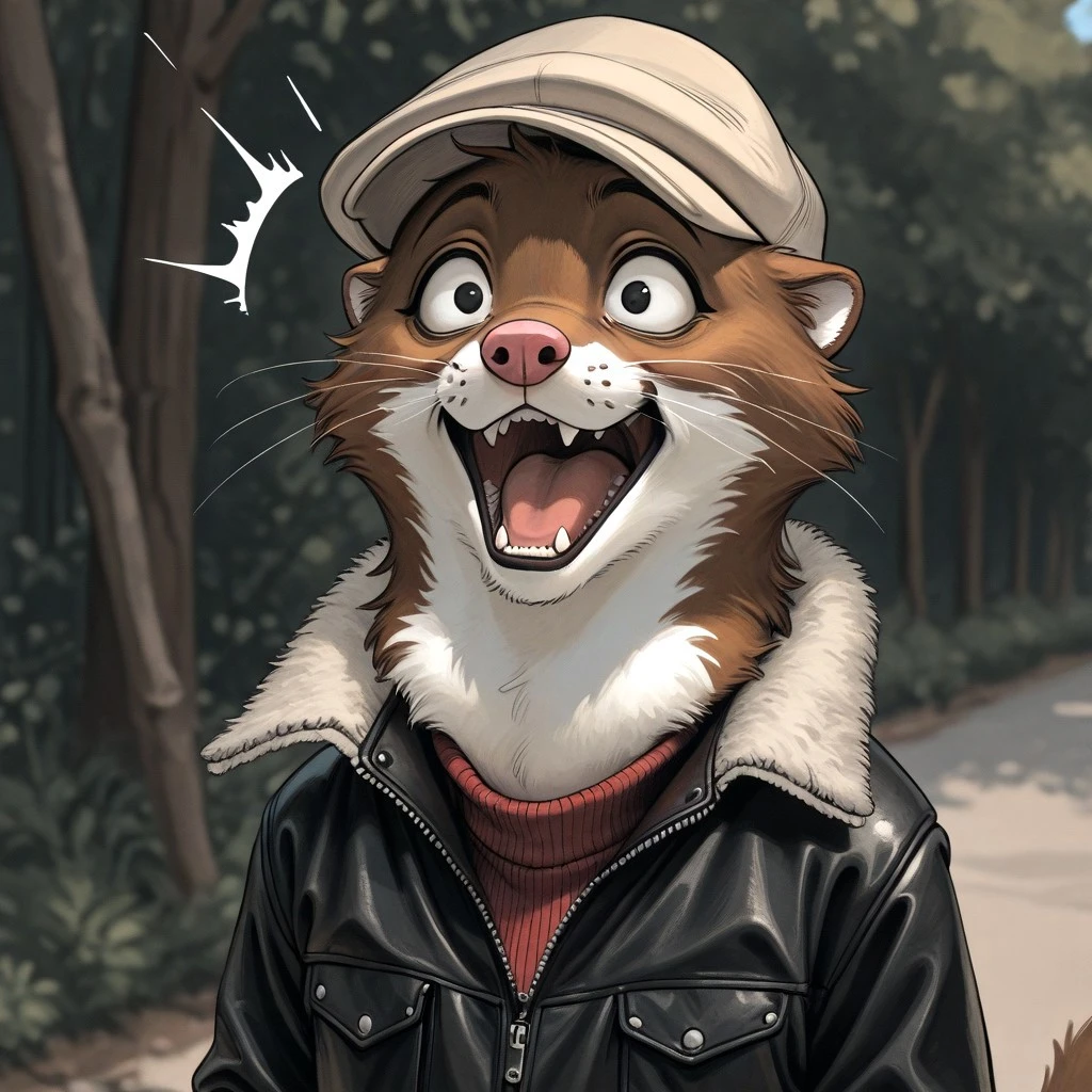 Weekly, Anthro Weasel, Lesser Weasel, brown weasel, brown fur, white chin, white neck, white inner ear, black eyebrows, black eyes, pink nose, whiskers, shortstack,