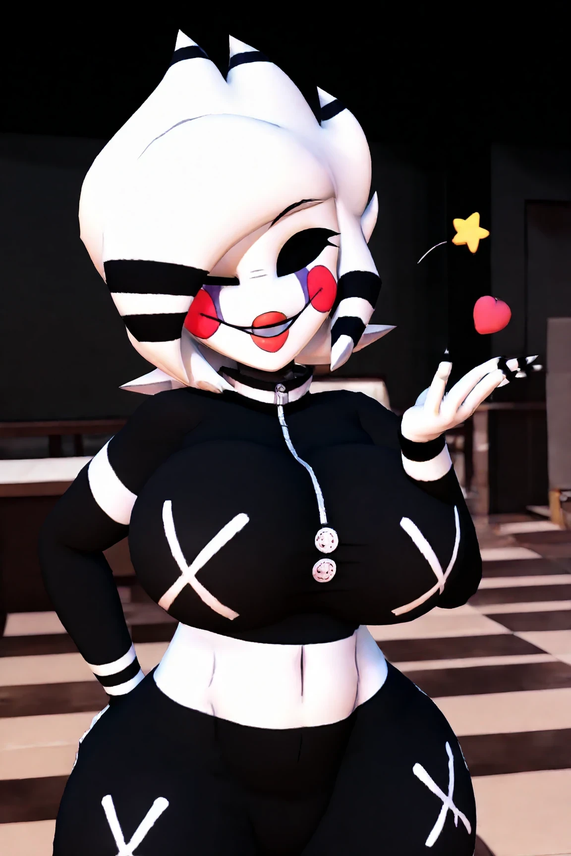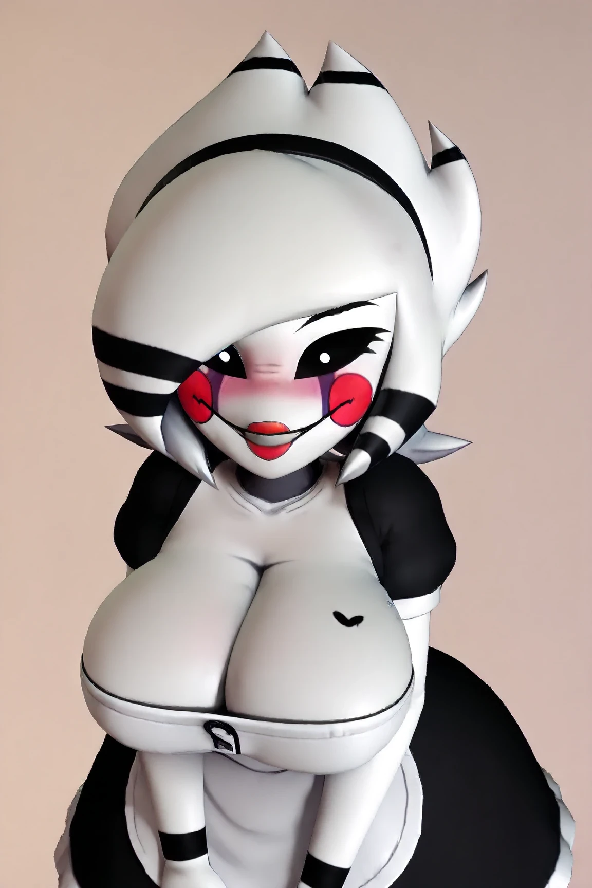 Marie (CryptiaCurves), white skin, lipstick, blush stickers, tear streaks, white hair, black hair, black sclera, white pupils,