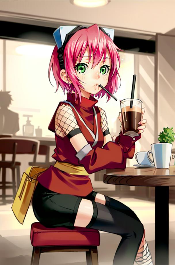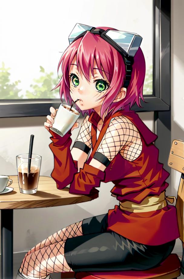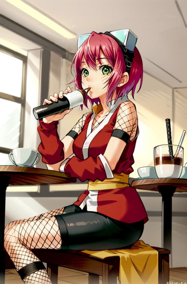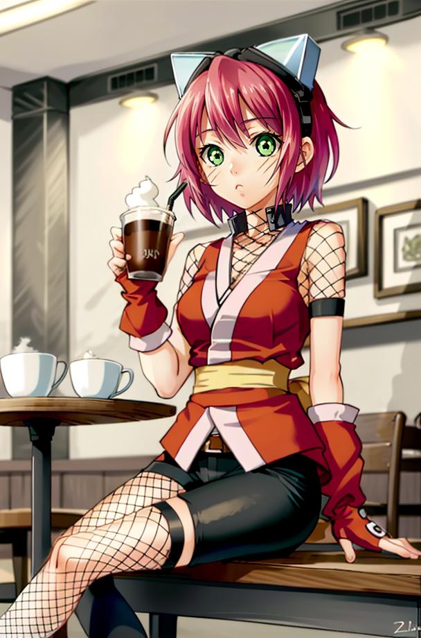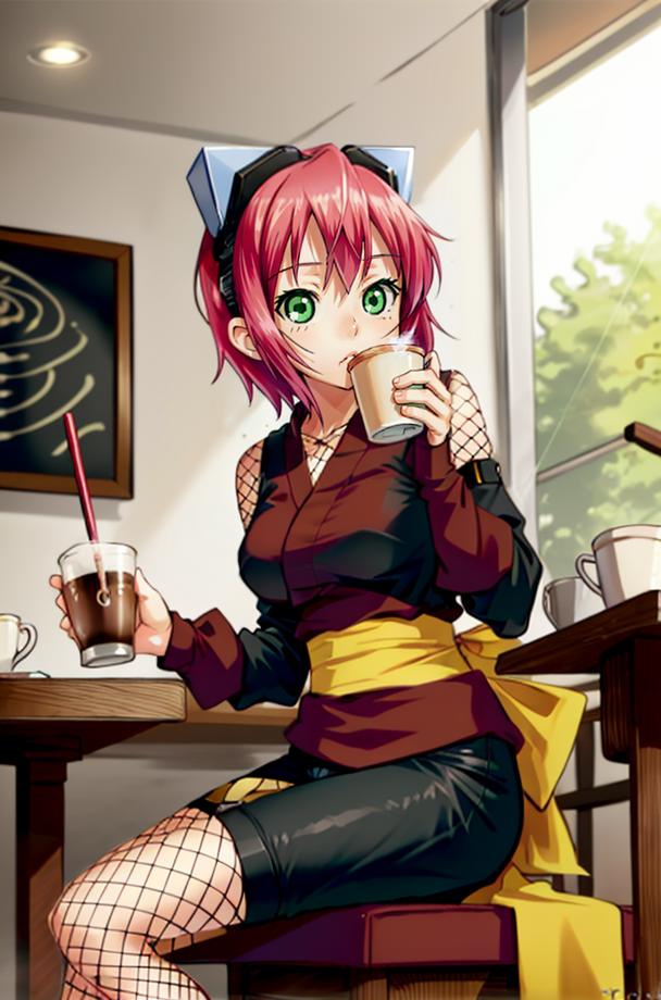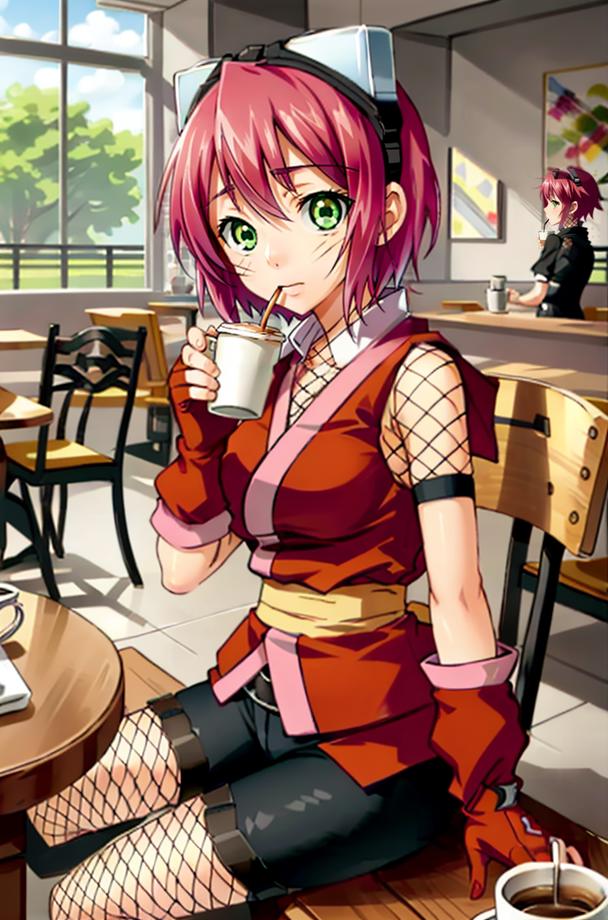(red ninja clothes, ninja, fishnet, fishnet legwear, black spandex shorts, shuriken),