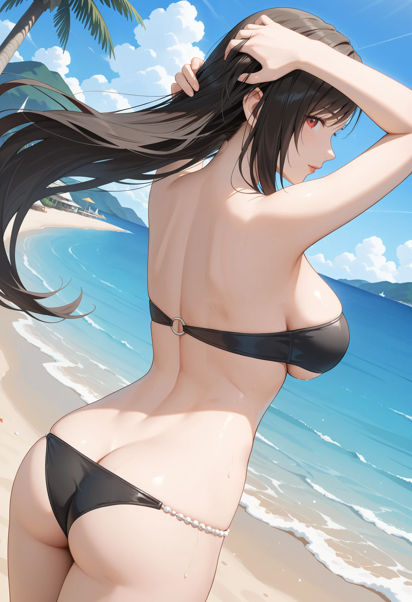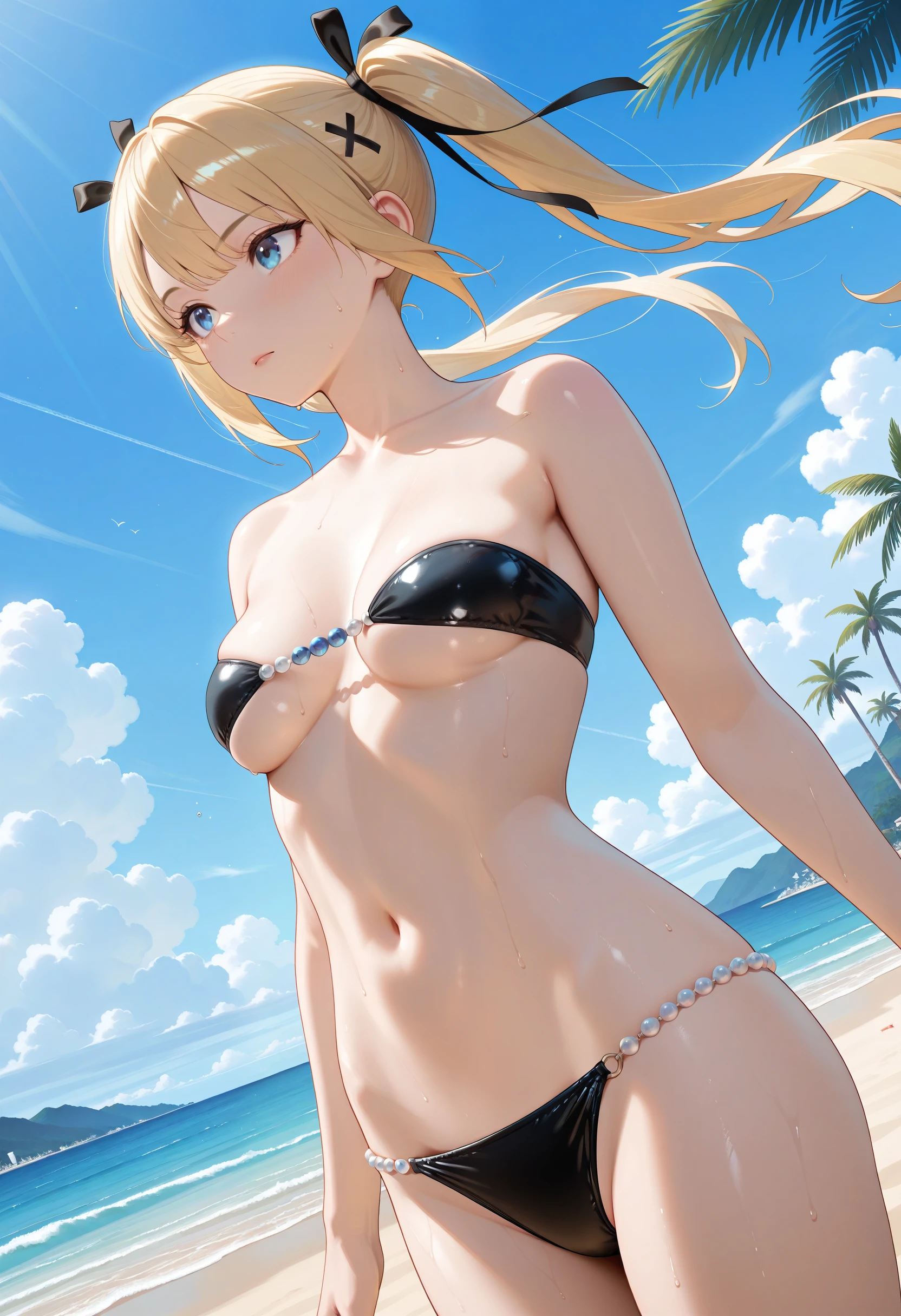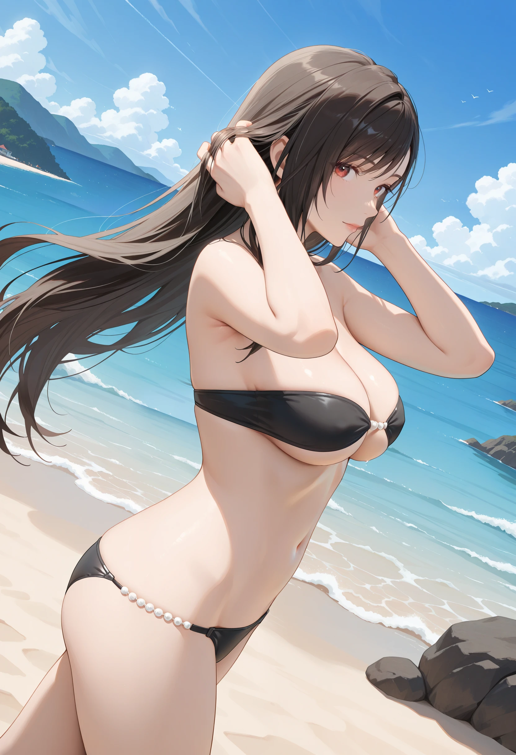 DaiquiriDoaxvv,black bikini,strapless bikini,beaded bikini string