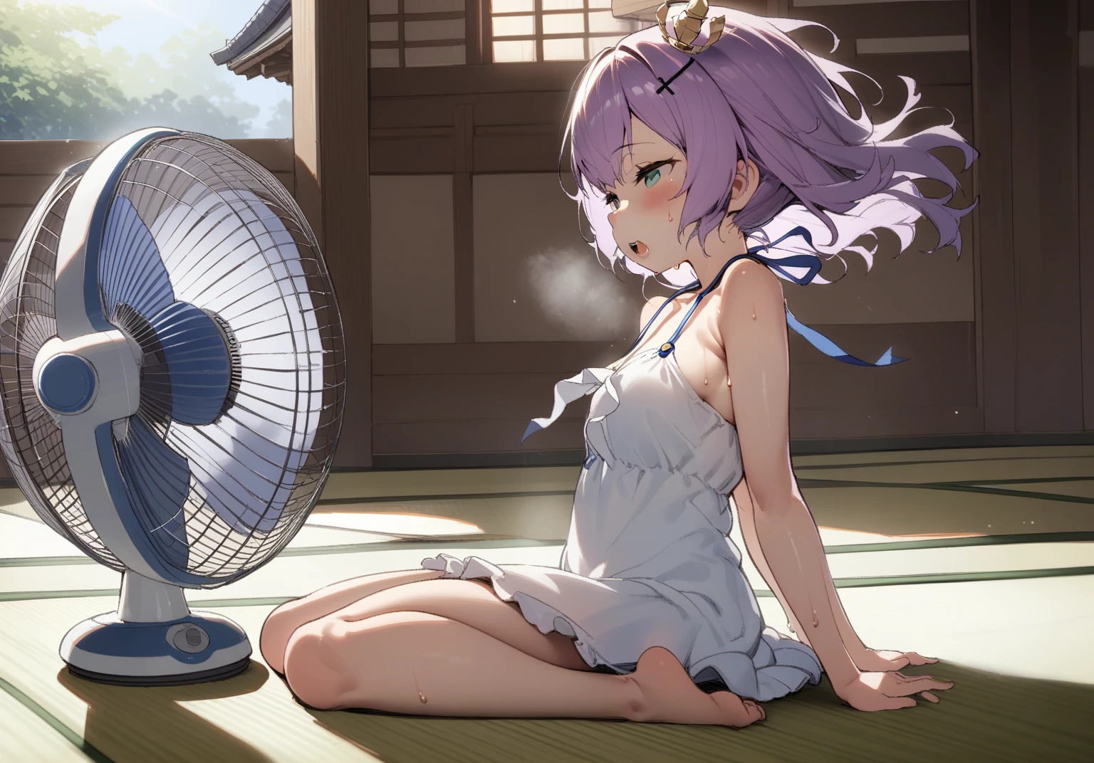 校服(slow_ahead!):1girl, solo, purple_hair,mini_crown, ribbon, hair_ornament,blue shirt, jewelry,